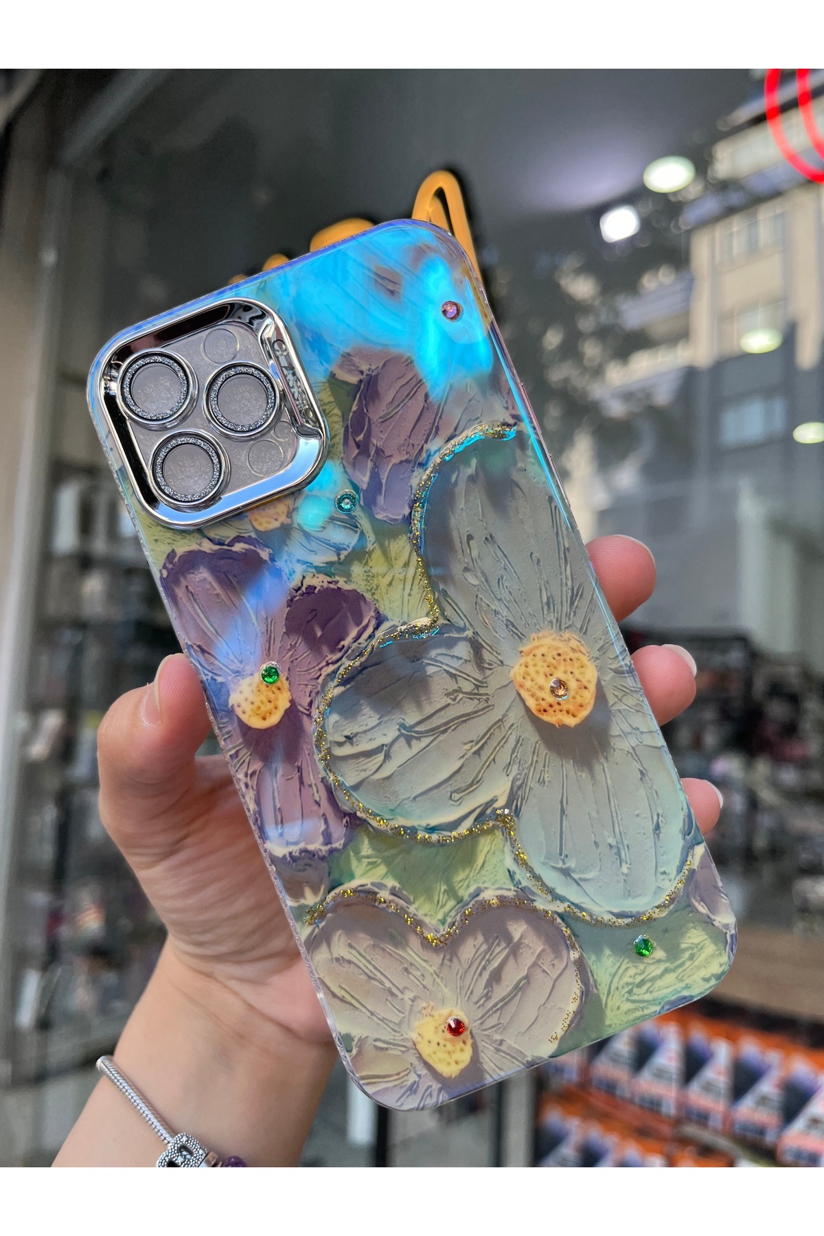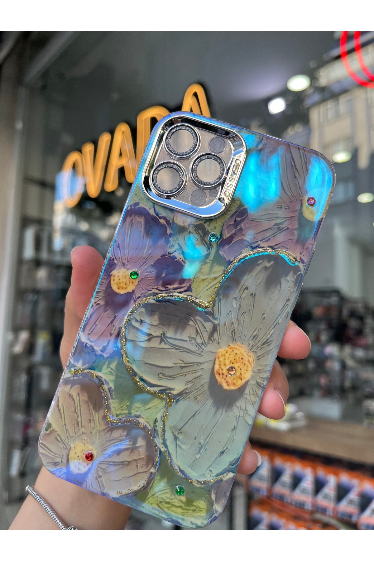 İPhone 12 Pro Uyumlu Simli Kamera Korumalı Çiçek Desenli Taşlı Hologramlı Lüks Kılıf İPhone 12 Pro Uyumlu Simli Kamera Korumalı Çiçek Desenli Taşlı Hologramlı Lüks Kılıf karakter12pro تک سایز