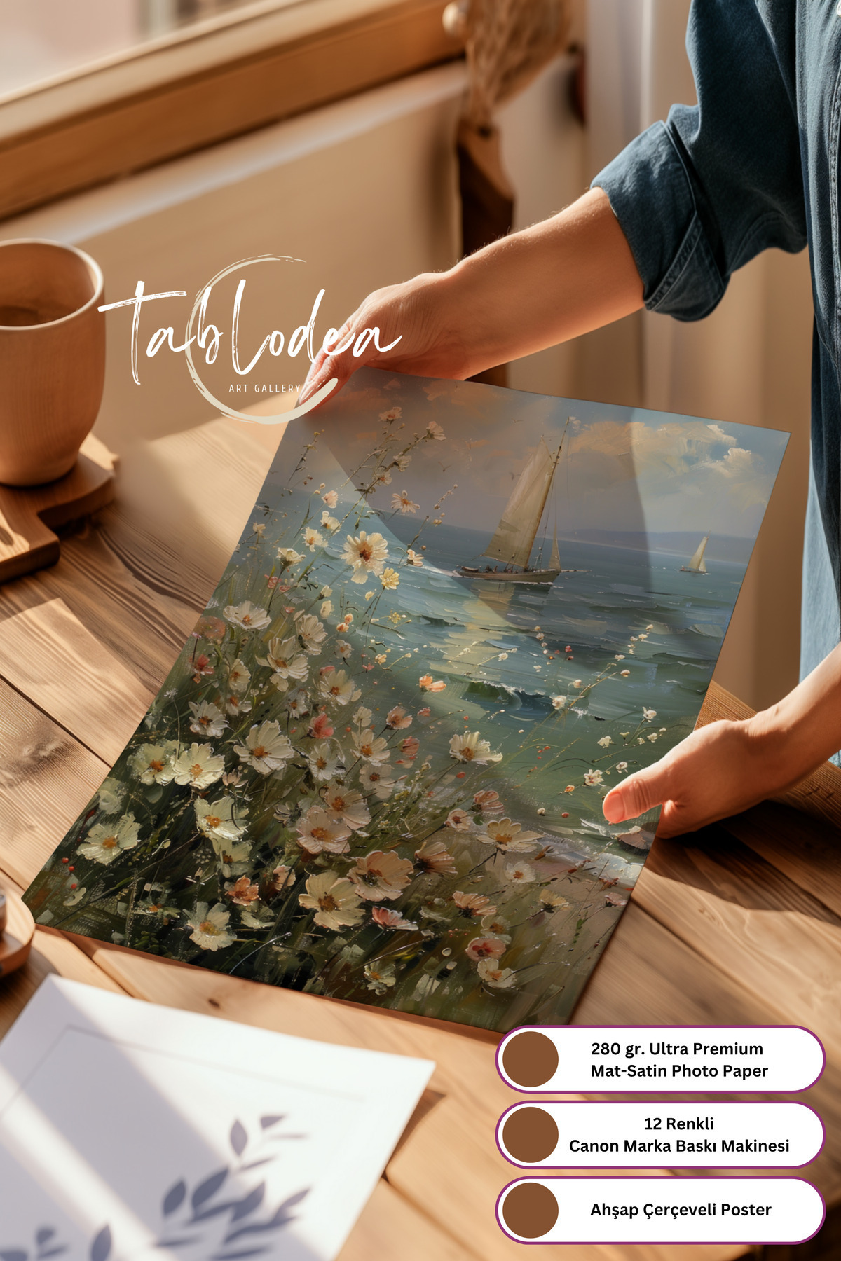 Vintage Çerçeveli Poster Tablo, Modern Dekoratif Minimalist Yelkenli ve Çiçekli Manzara Tablosu Vintage Çerçeveli Poster Tablo, Modern Dekoratif Minimalist Yelkenli ve Çiçekli Manzara Tablosu TDYELKENCICEKMANZARASI-123 30 x 42
