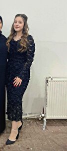Üç Boyutlu Gül Aplikeli Kalp Yaka Siyah Elbise Üç Boyutlu Gül Aplikeli Kalp Yaka Siyah Elbise 00588 XL