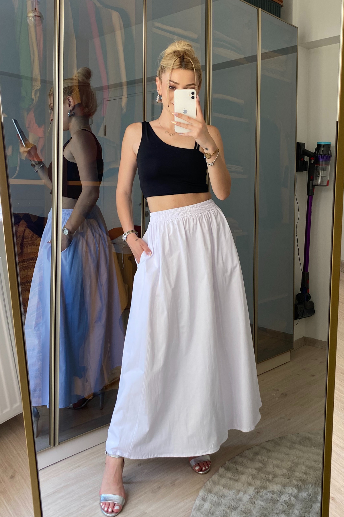 CEPLİ BELİ LASTİKLİ UZUN POPLİN ETEK CEPLİ BELİ LASTİKLİ UZUN POPLİN ETEK MDDSSST Standart