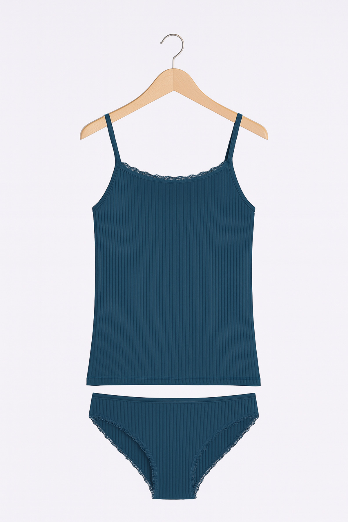 Kadın Giyim Dantel Detaylı İp Askılı Atlet & Bikini Külot İkili Set Takım LL.24.ILK01.001 Kadın Giyim Dantel Detaylı İp Askılı Atlet & Bikini Külot İkili Set Takım LL.24.ILK01.001 L/XL