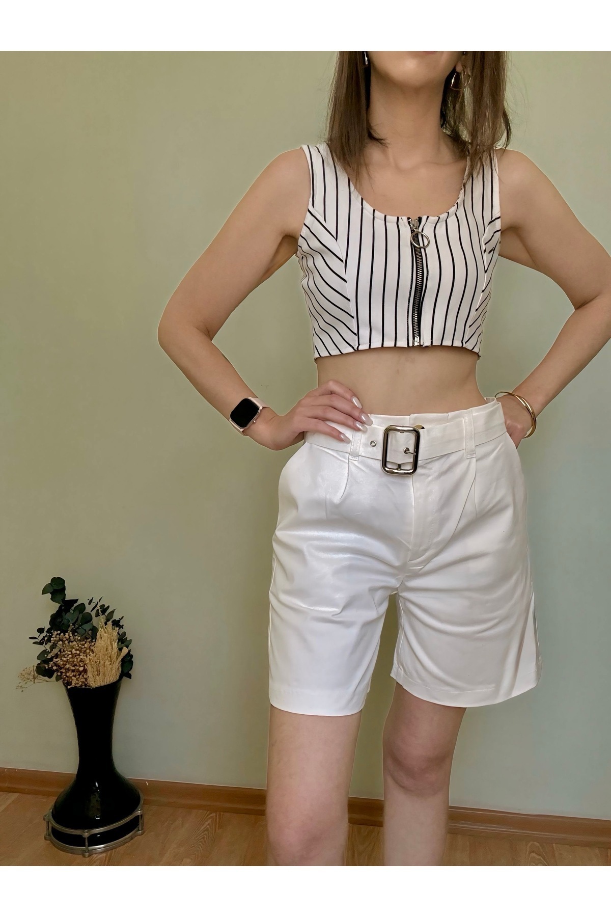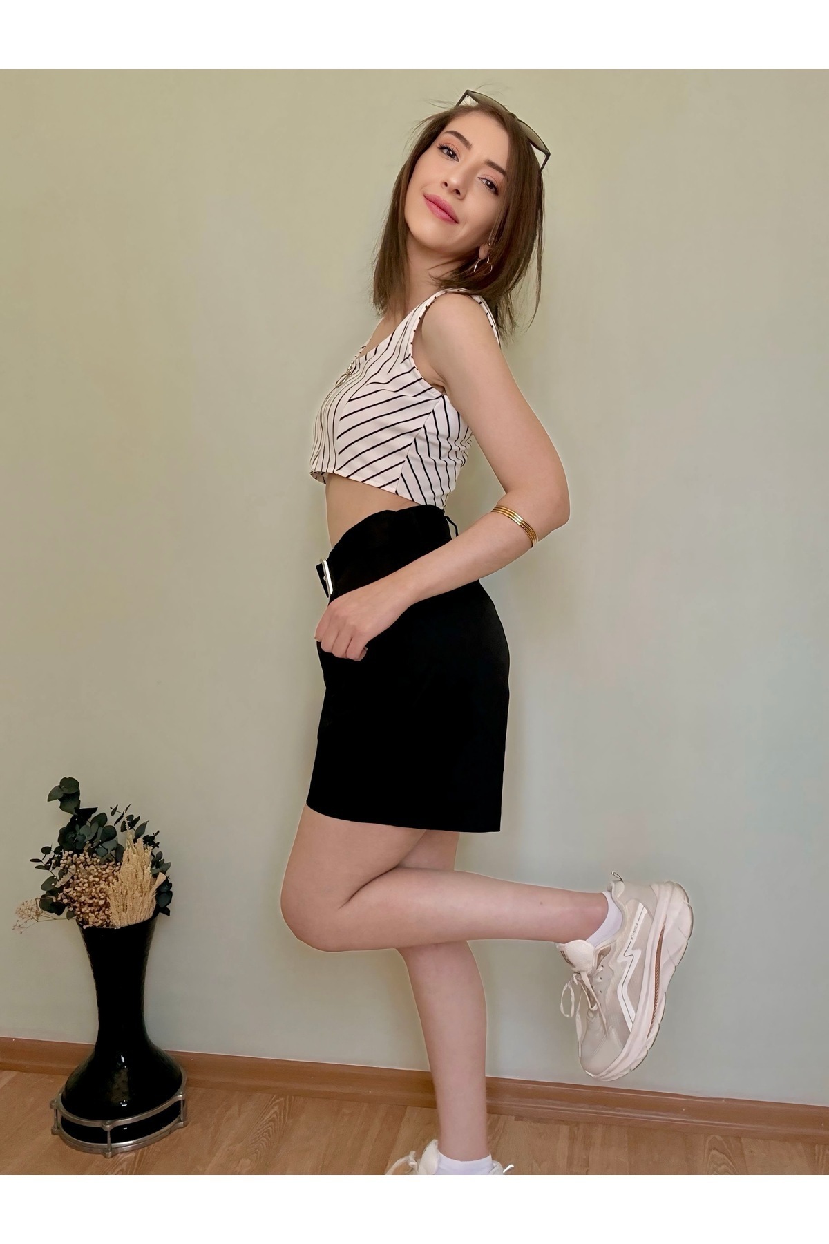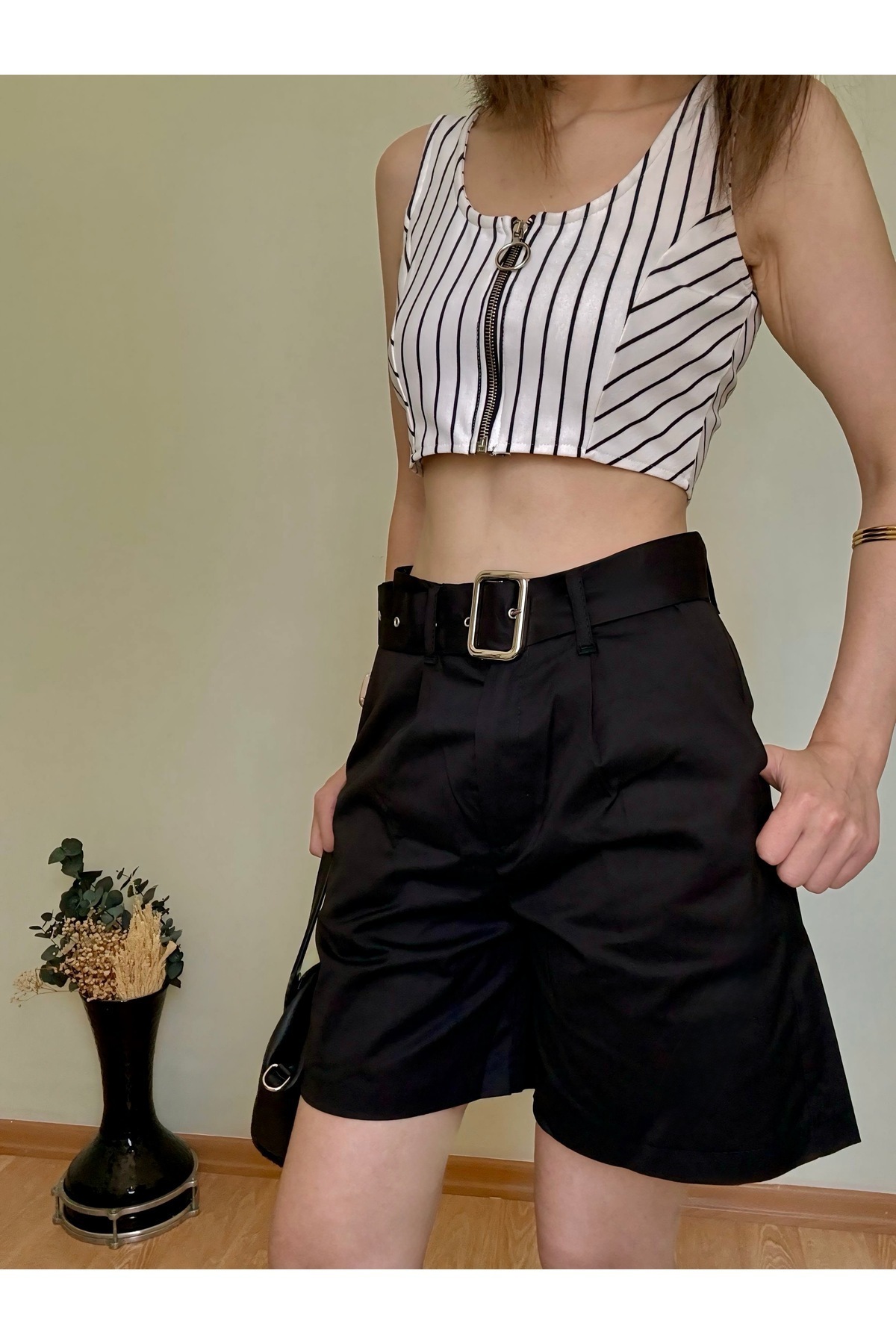 Koyu Siyah Kuş Gözü Kemerli Geniş Paçalı Boyfriend Kalıp Gabardin Şort Koyu Siyah Kuş Gözü Kemerli Geniş Paçalı Boyfriend Kalıp Gabardin Şort MOM2125368M001 XL