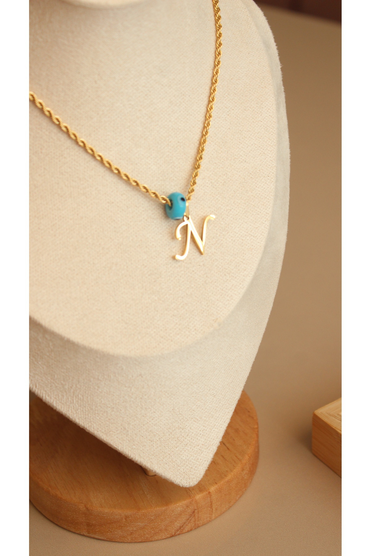 KARARMAZ ÇELİK ALTIN RENK BURGU ZİNCİR NAZAR BONCUKLU N HARFLİ ÇELİK KOLYE KARARMAZ ÇELİK ALTIN RENK BURGU ZİNCİR NAZAR BONCUKLU N HARFLİ ÇELİK KOLYE Tist-A45 45