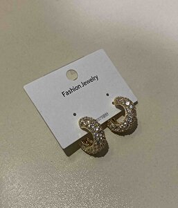 Pirinç Zirkon Taşlı Halka Model Gold Renk Kadın Küpe Pirinç Zirkon Taşlı Halka Model Gold Renk Kadın Küpe BKP10634 تک سایز