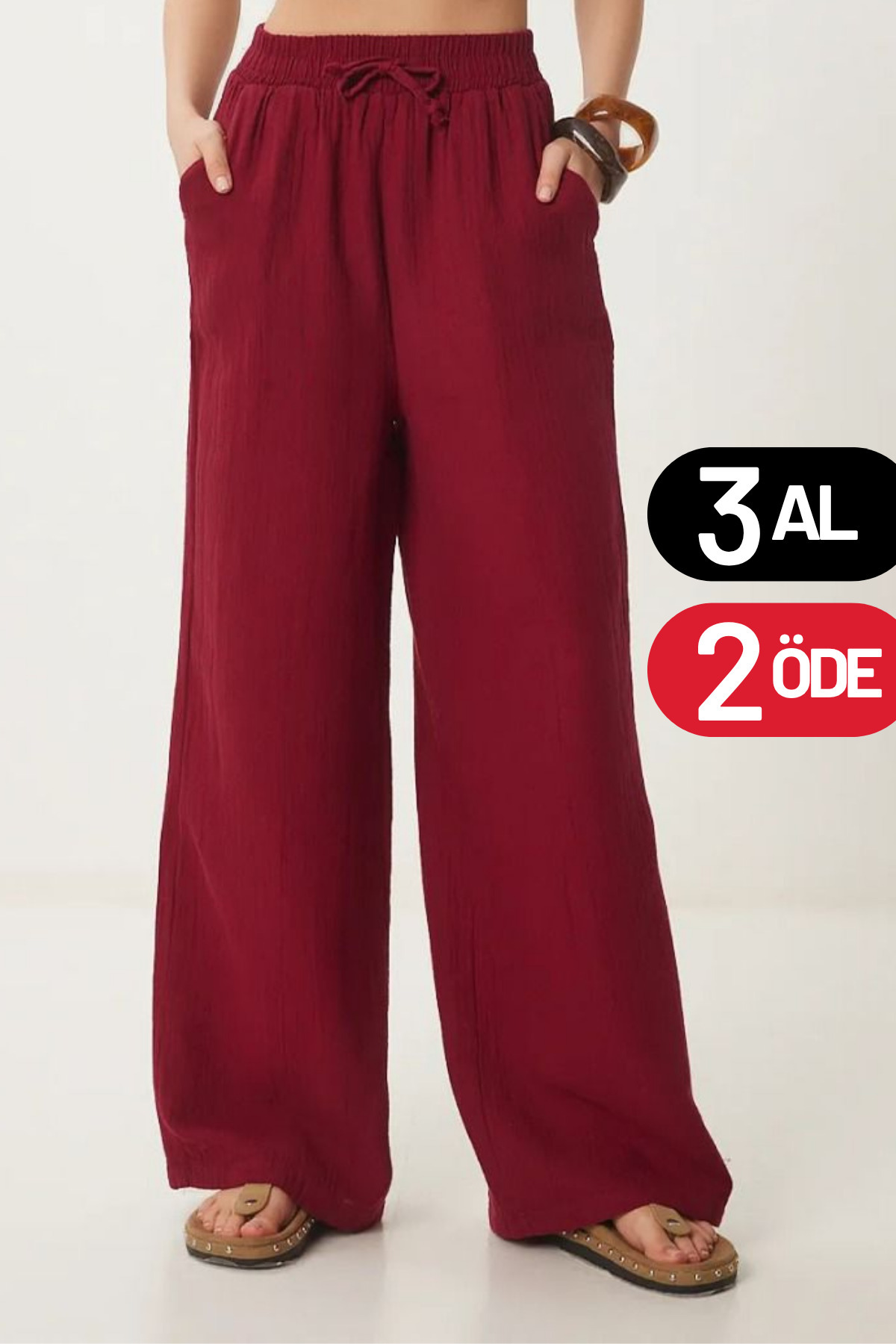 Kadın Hafif Transparan Beli Lastikli Palazzo Müslin Pantolon 3078 Kadın Hafif Transparan Beli Lastikli Palazzo Müslin Pantolon 3078 MB3078 42