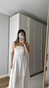 X Melis Ağazat - Bol Kalıp Pamuklu Astarlı Fistolu Brodeli Kare Yaka Uzun Askılı Elbise X Melis Ağazat - Bol Kalıp Pamuklu Astarlı Fistolu Brodeli Kare Yaka Uzun Askılı Elbise 5SAK80283EW 44