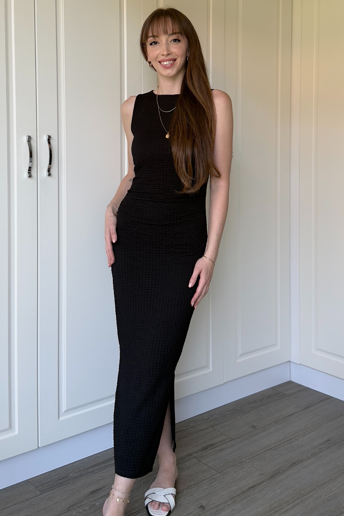 Gofre Kumaş Siyah Midi Elbise Gofre Kumaş Siyah Midi Elbise NovaELB34 L