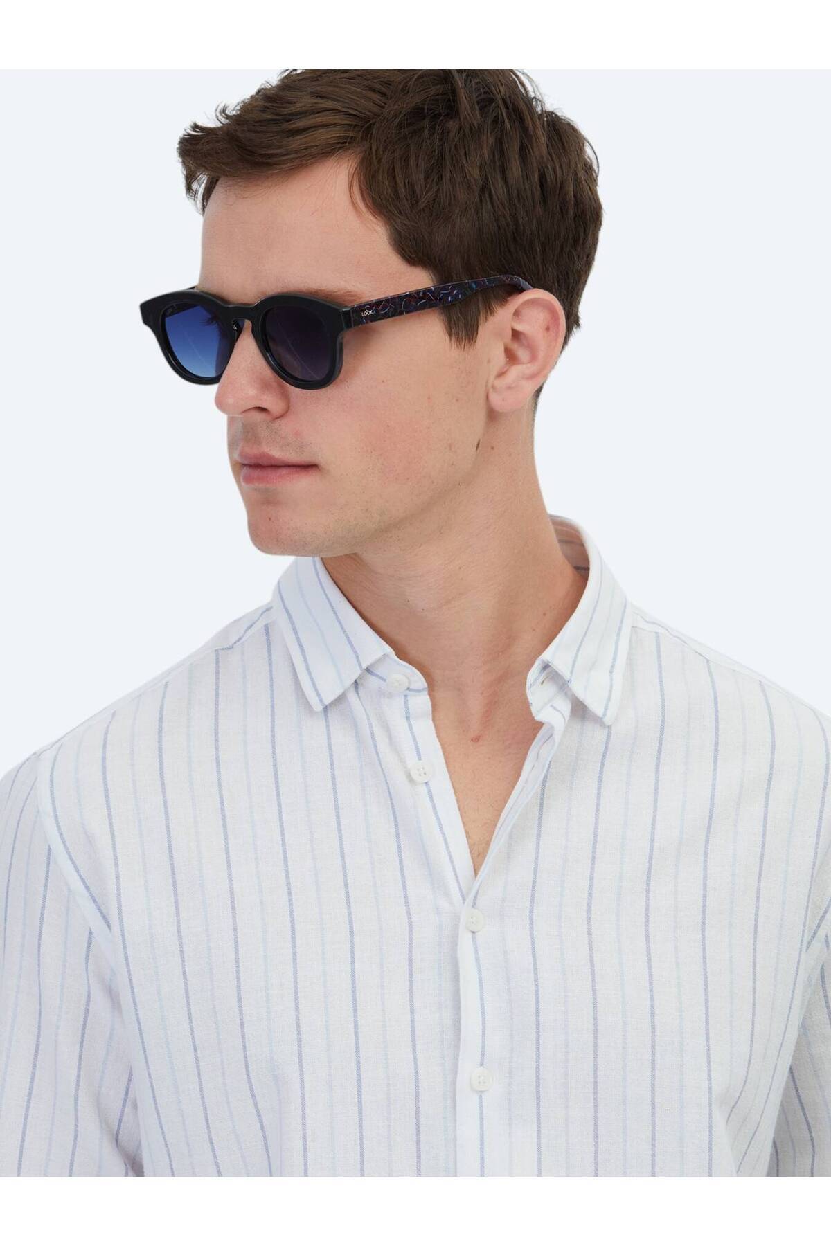 Mavi Çizgili Regular Fit Dokuma Casual %100 Pamuk Gömlek Mavi Çizgili Regular Fit Dokuma Casual %100 Pamuk Gömlek 50708 47