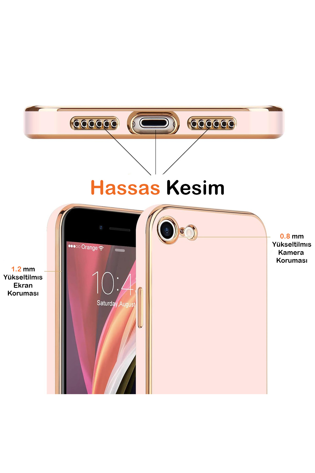 iPhone 7-8-SE Uyumlu Lazer Kesim Gold Çerçeve Pembe Kapak Kılıf iPhone 7-8-SE Uyumlu Lazer Kesim Gold Çerçeve Pembe Kapak Kılıf lzr7 تک سایز