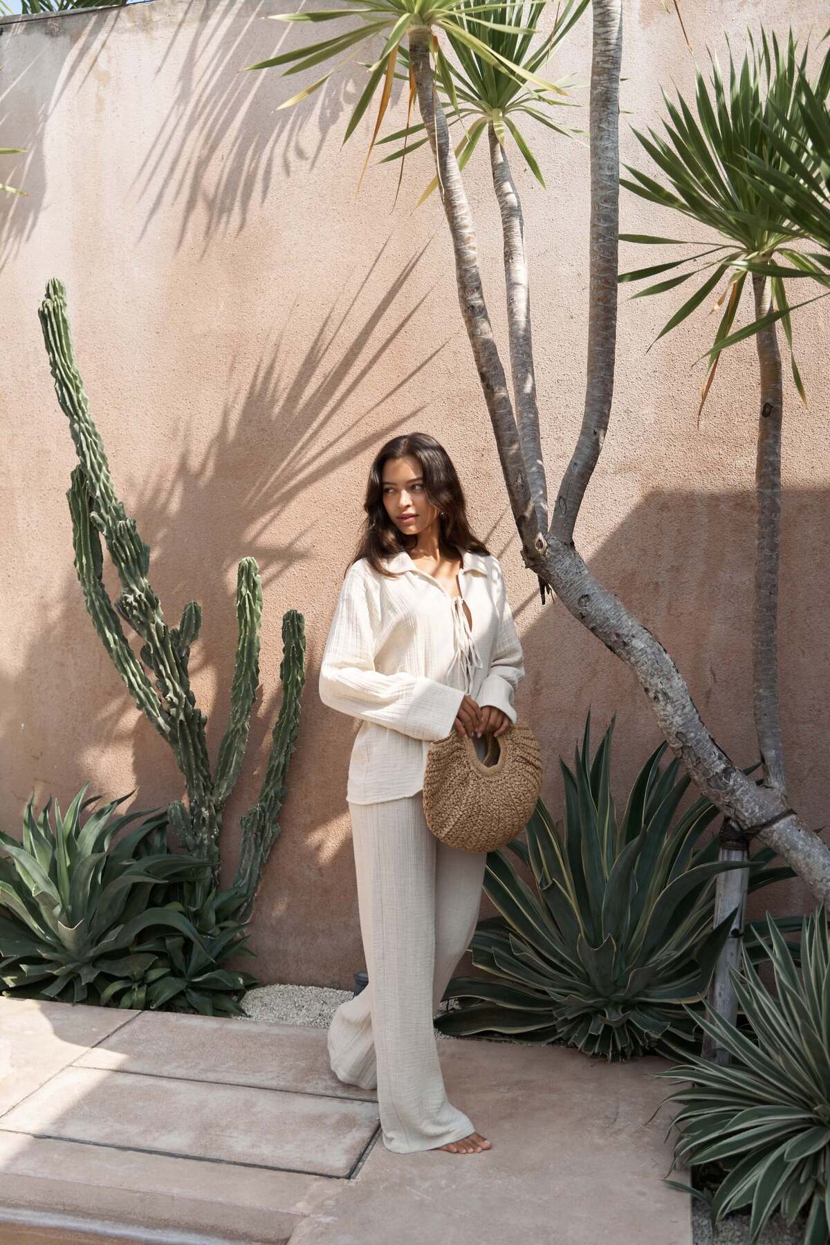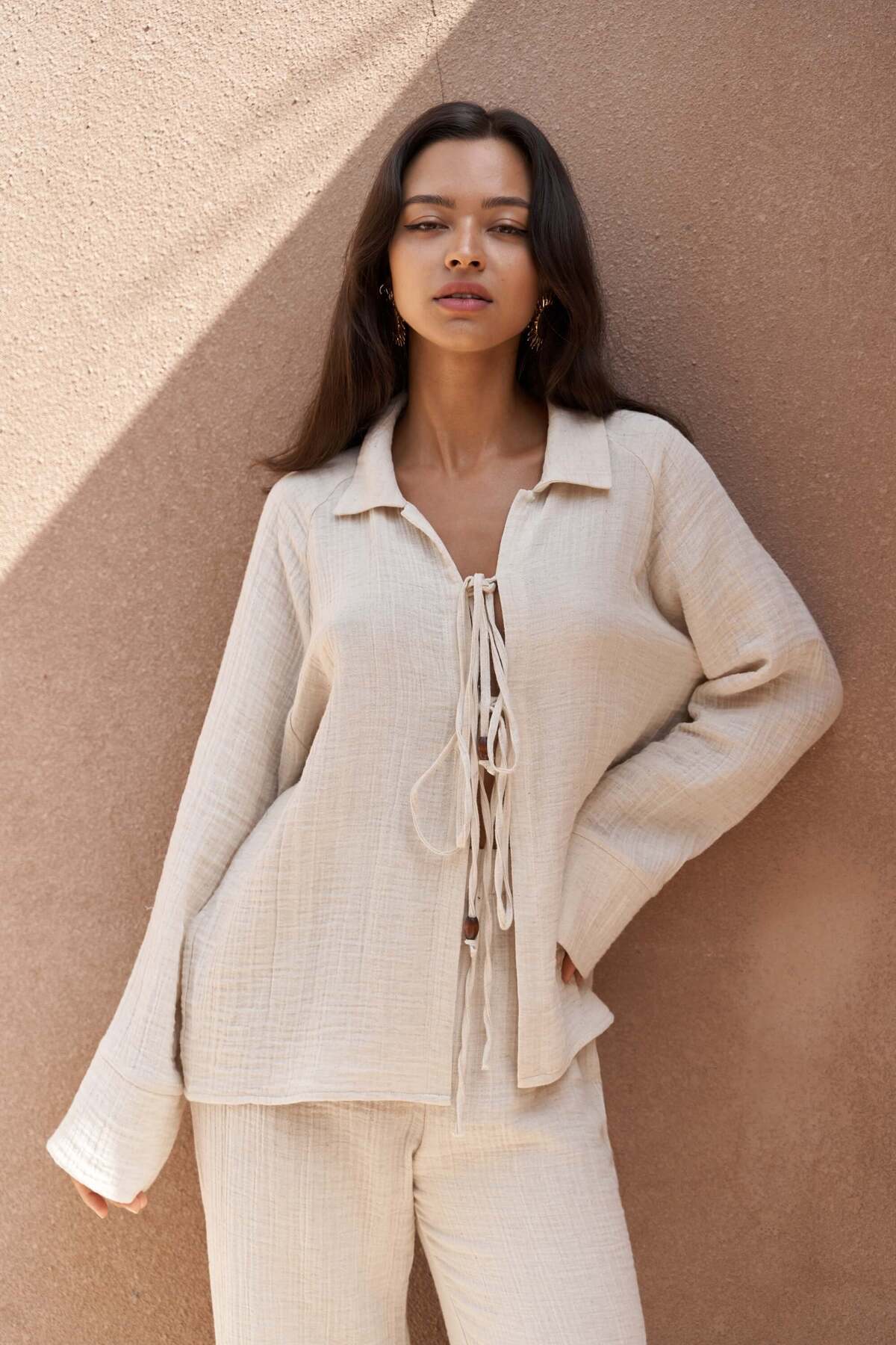 Bali Boncuklu Bej Müslin Takım Bali Boncuklu Bej Müslin Takım 2003 L