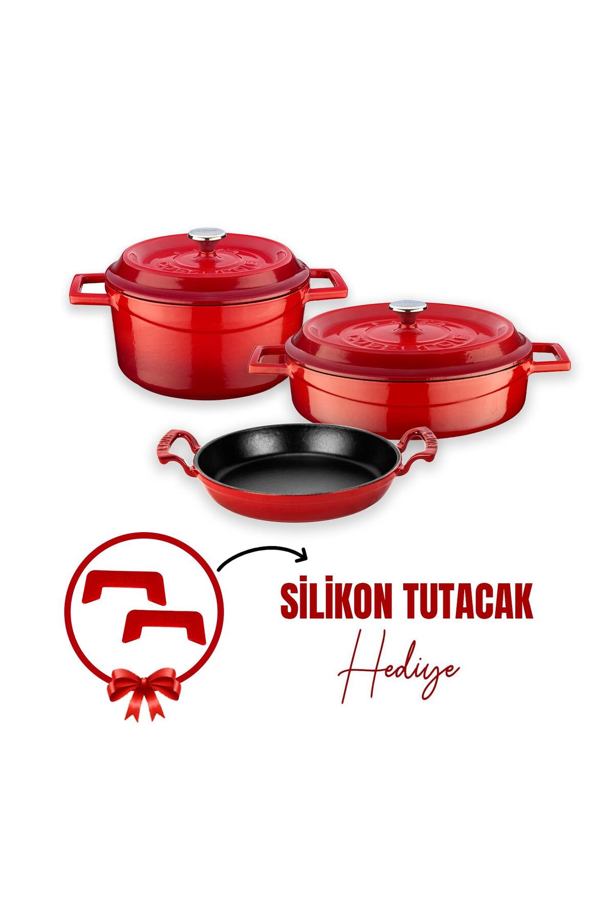 Lava Döküm Yuvarlak Derin ve Sığ 5 Parça Tencere Seti Ahşap Kaşık Hediyeli Lava Döküm Yuvarlak Derin ve Sığ 5 Parça Tencere Seti Ahşap Kaşık Hediyeli LV Y TSC K2 SET تک سایز