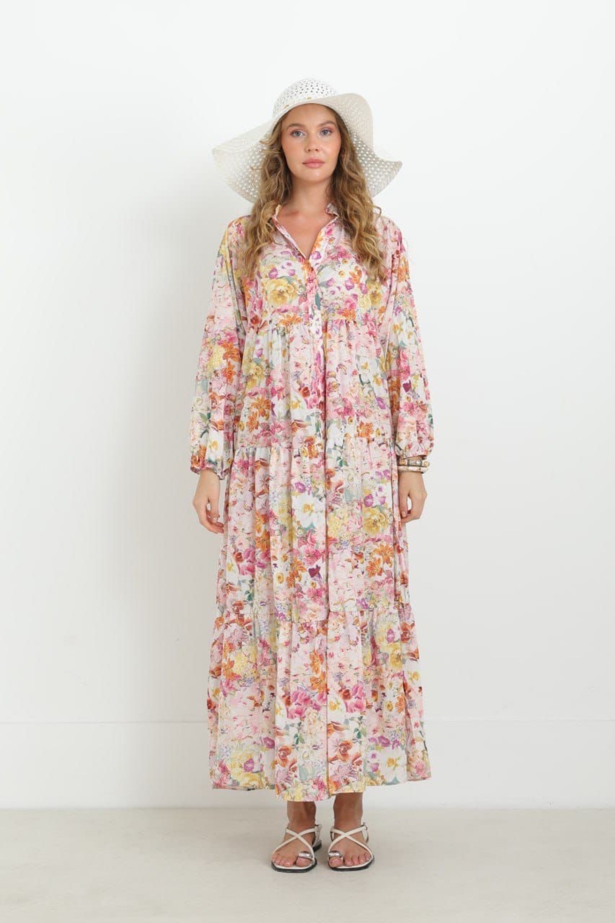 Çiçek Desenli Oranj Elbise 32363 Çiçek Desenli Oranj Elbise 32363 L/XL