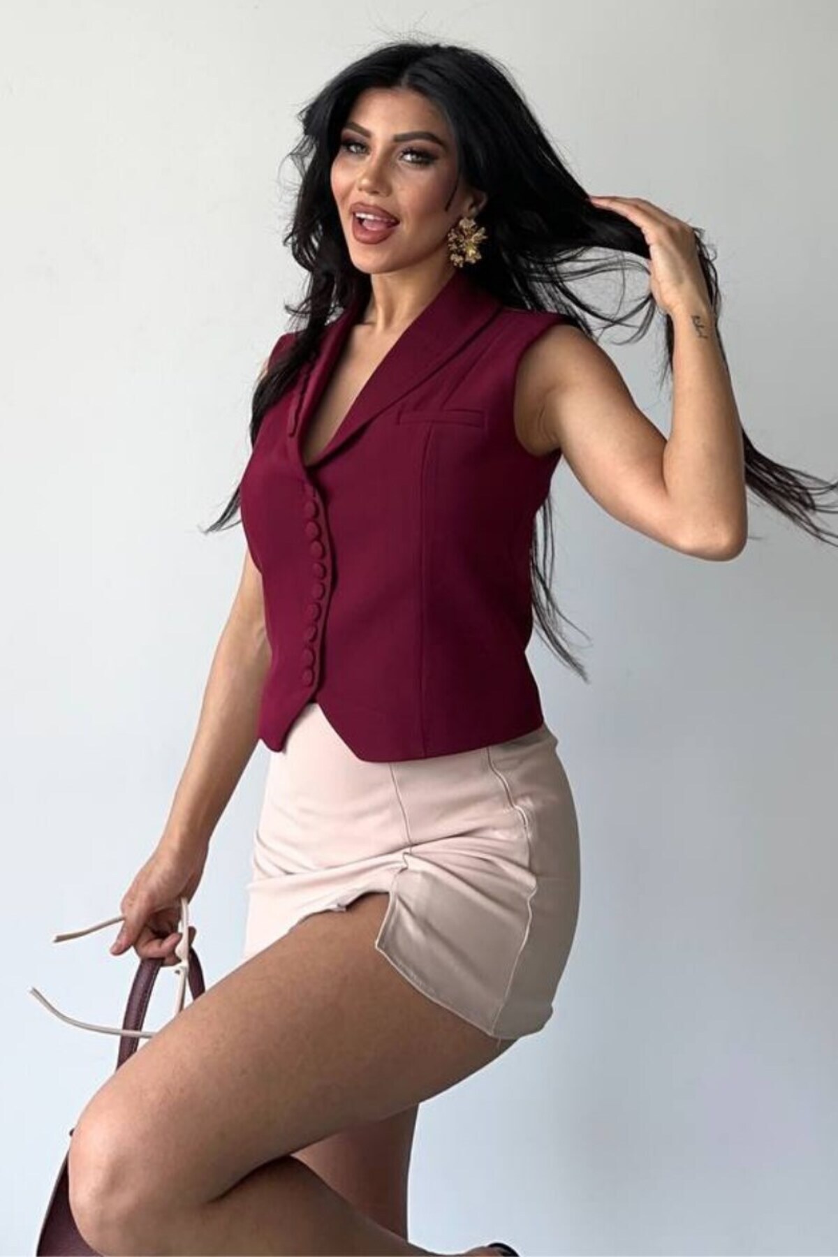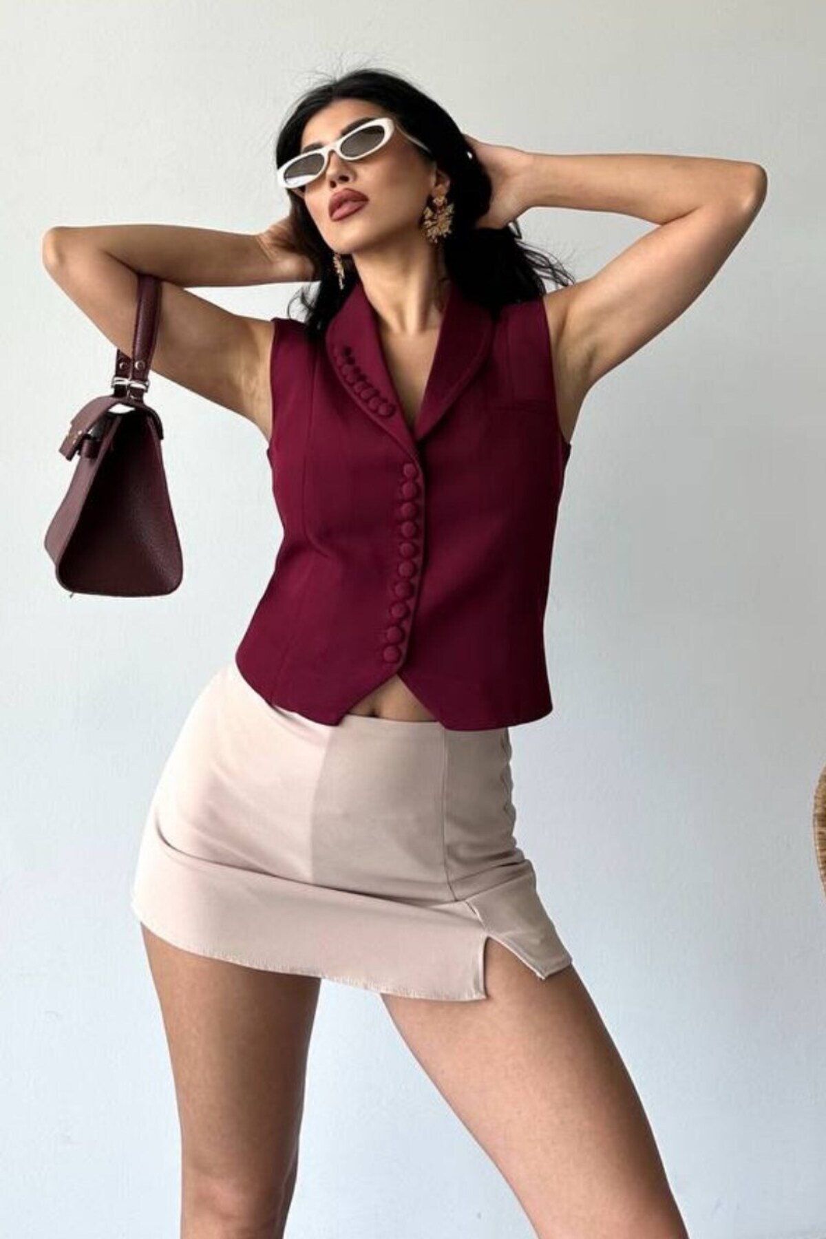 Kadın Yelek Kısa Şık Düğme Detaylı Ceket Yaka Kolsuz Yelek Kadın Yelek Kısa Şık Düğme Detaylı Ceket Yaka Kolsuz Yelek PRA-12809954-465906 42