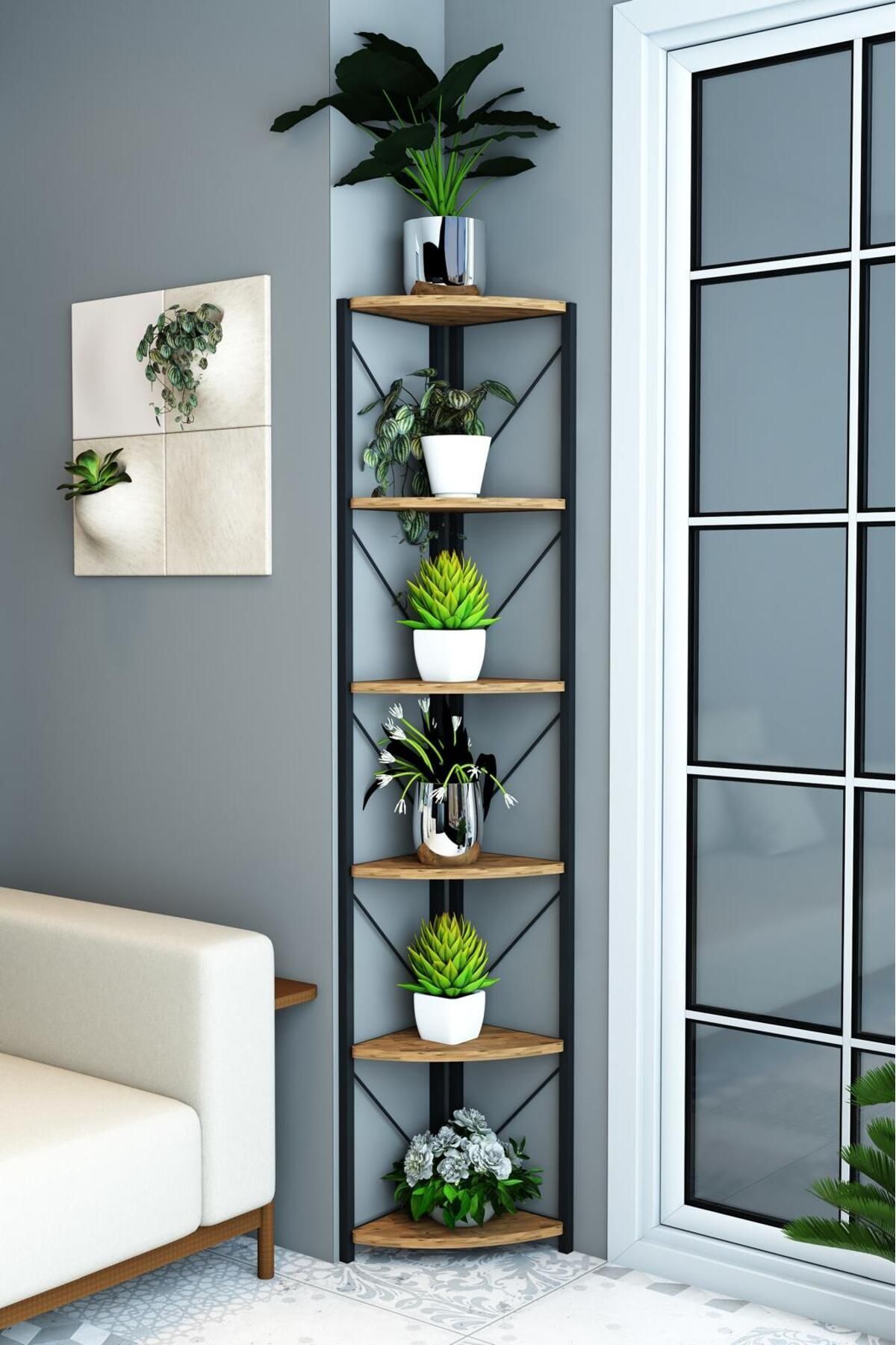 Form 6 Raflı Metal Köşe Rafı Saksılık Çiçeklik Çok Amaçlı Dekoratif Duvar Rafı 180 Cm Ceviz Form 6 Raflı Metal Köşe Rafı Saksılık Çiçeklik Çok Amaçlı Dekoratif Duvar Rafı 180 Cm Ceviz RMKS6RAF تک سایز
