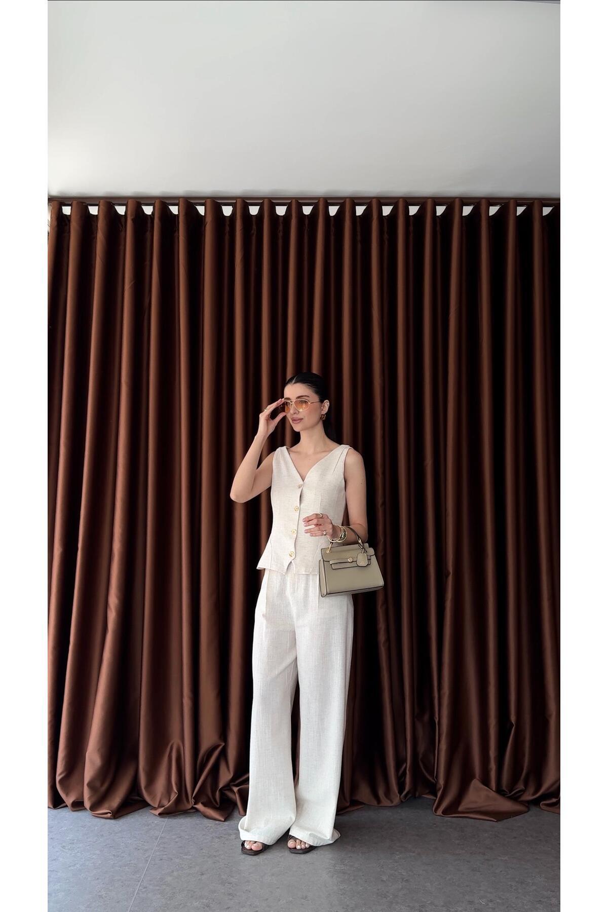Taş Keten Yelek-Pantolon Takım Taş Keten Yelek-Pantolon Takım 11544 L