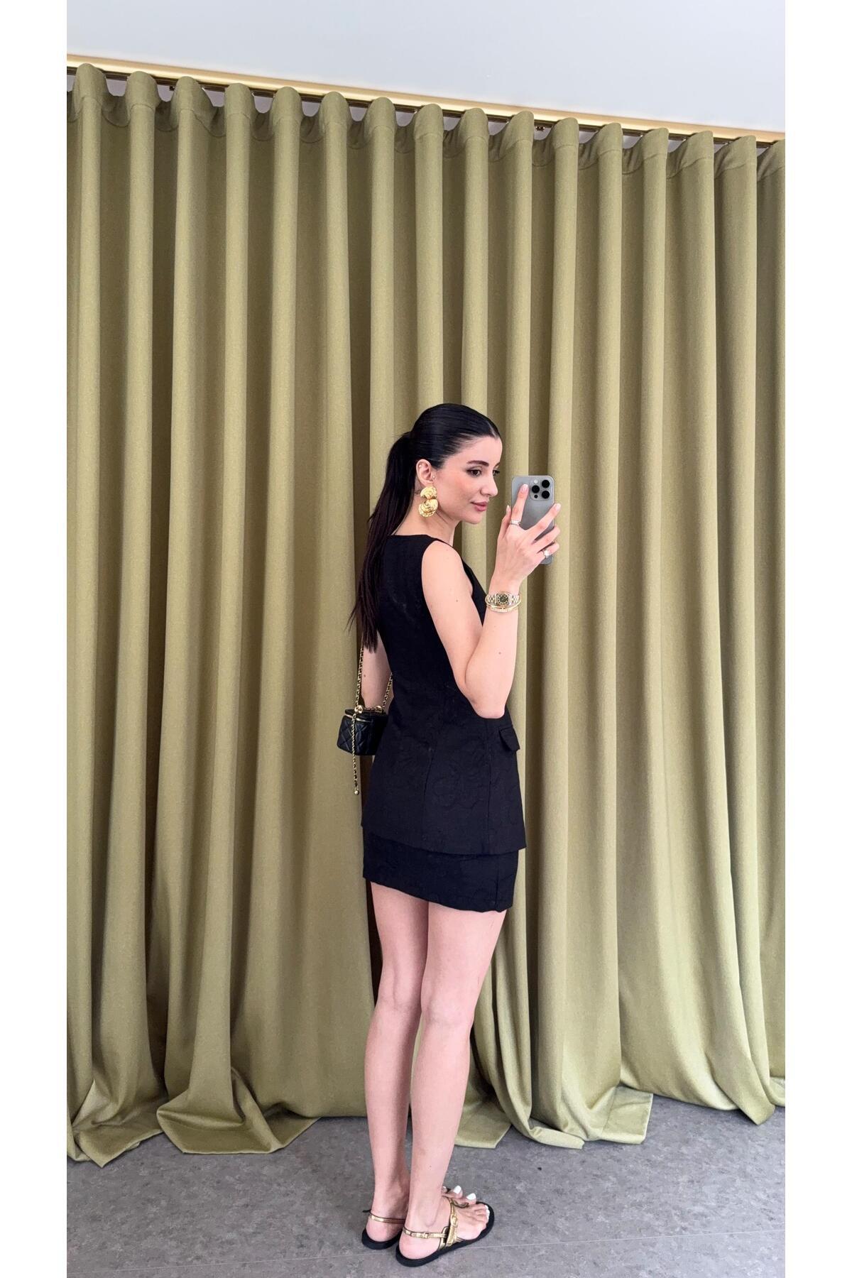 Gold Düğmeli Jakarlı Siyah Takım Gold Düğmeli Jakarlı Siyah Takım 11548 L