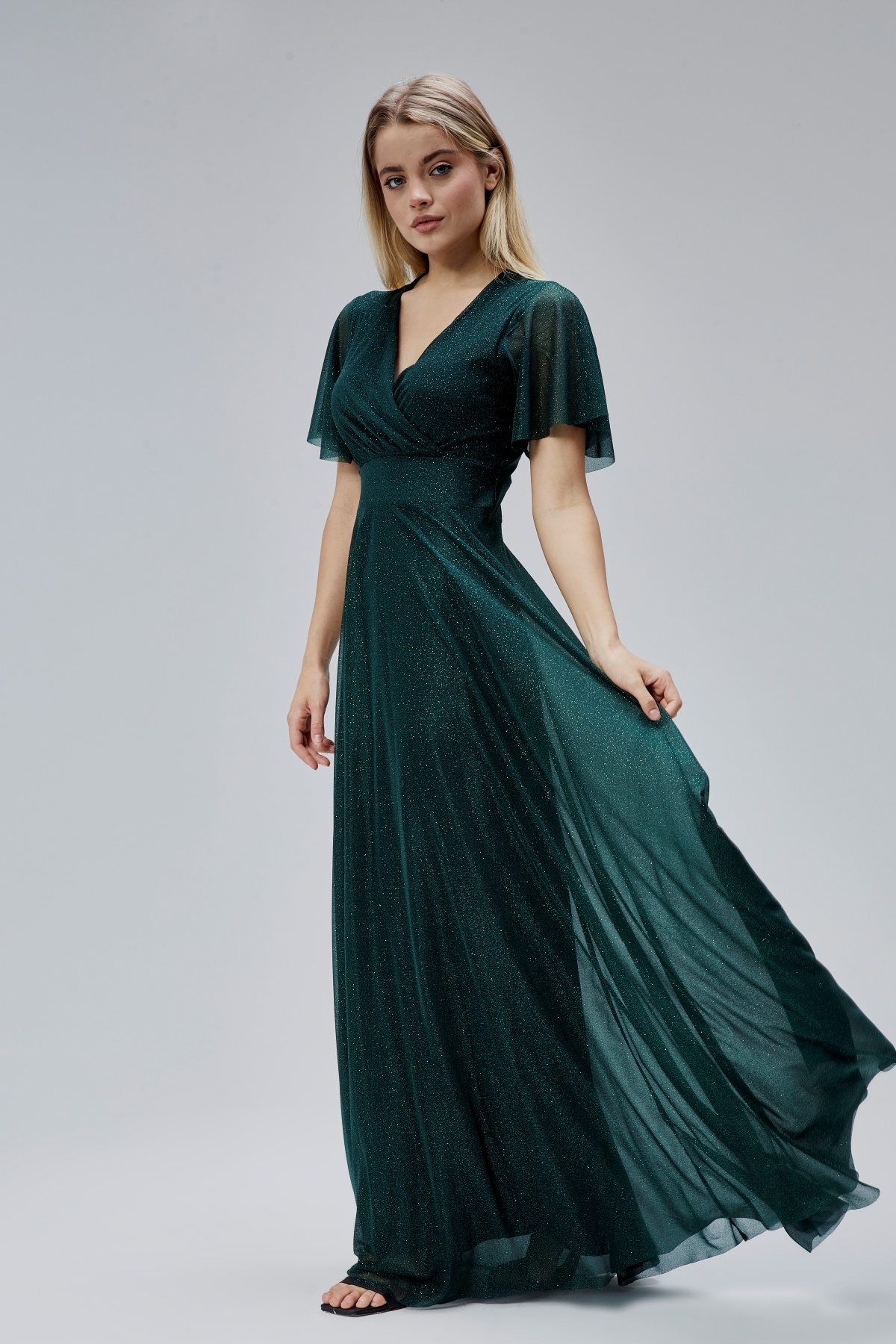 Kadın Simli Tüllü Kruvaze Yakalı İç Astarlı Volan Kollu Fermuarlı Esnek Şık Uzun Abiye Elbise H3051 Kadın Simli Tüllü Kruvaze Yakalı İç Astarlı Volan Kollu Fermuarlı Esnek Şık Uzun Abiye Elbise H3051 HV06063051 46