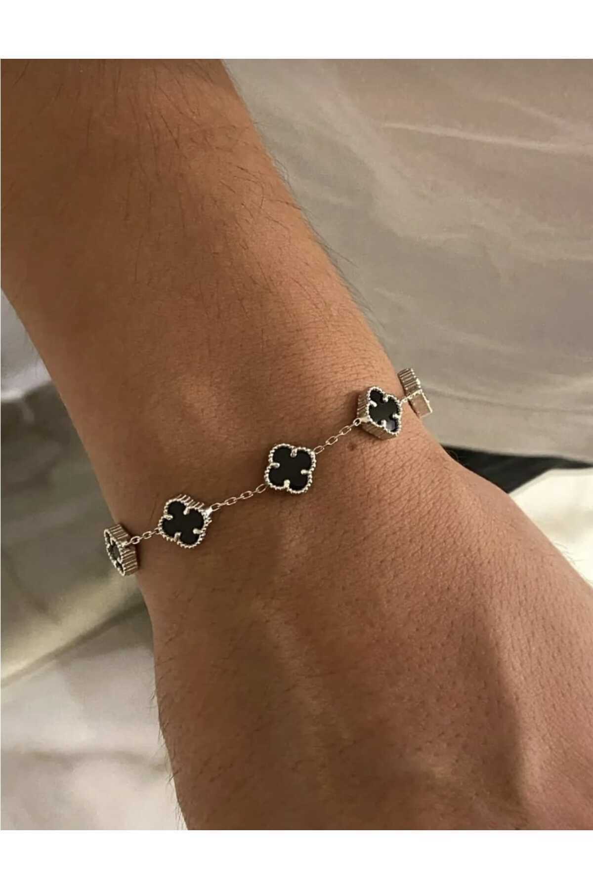 Kadın Erkek Çelik Bileklik - 4 Yapraklı Yonca 5'li Siyah Oniks Taşlı Altın Kaplama • Işıklı Kutuda Kadın Erkek Çelik Bileklik - 4 Yapraklı Yonca 5'li Siyah Oniks Taşlı Altın Kaplama • Işıklı Kutuda VOGYRVCSONKSBLK 17-19