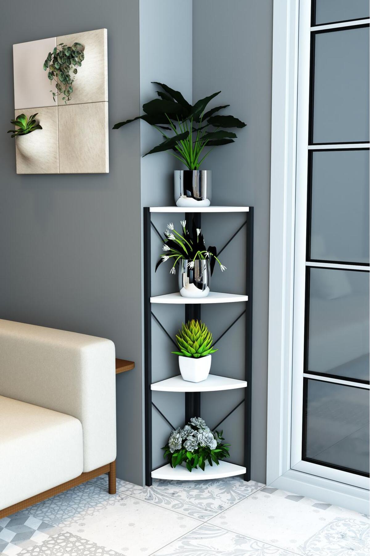 Datça 4 Raflı Metal Köşe Rafı Çiçeklik Saksılık Çok Amaçlı Dekoratif Raf Standı Beyaz Datça 4 Raflı Metal Köşe Rafı Çiçeklik Saksılık Çok Amaçlı Dekoratif Raf Standı Beyaz DATÇA4RAFLIKÖŞEÇİÇEKLİK تک سایز
