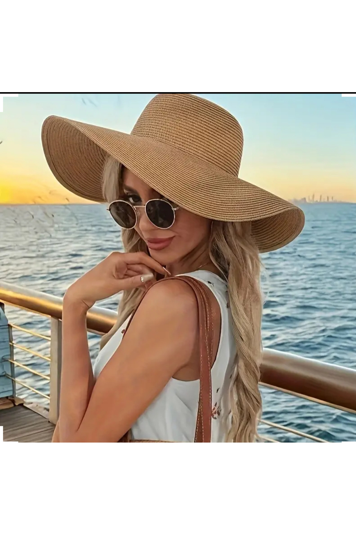 Altın Renk Aksesuarlı Kadın Dokulu Hasır Şapka Altın Renk Aksesuarlı Kadın Dokulu Hasır Şapka GR10521 تک سایز