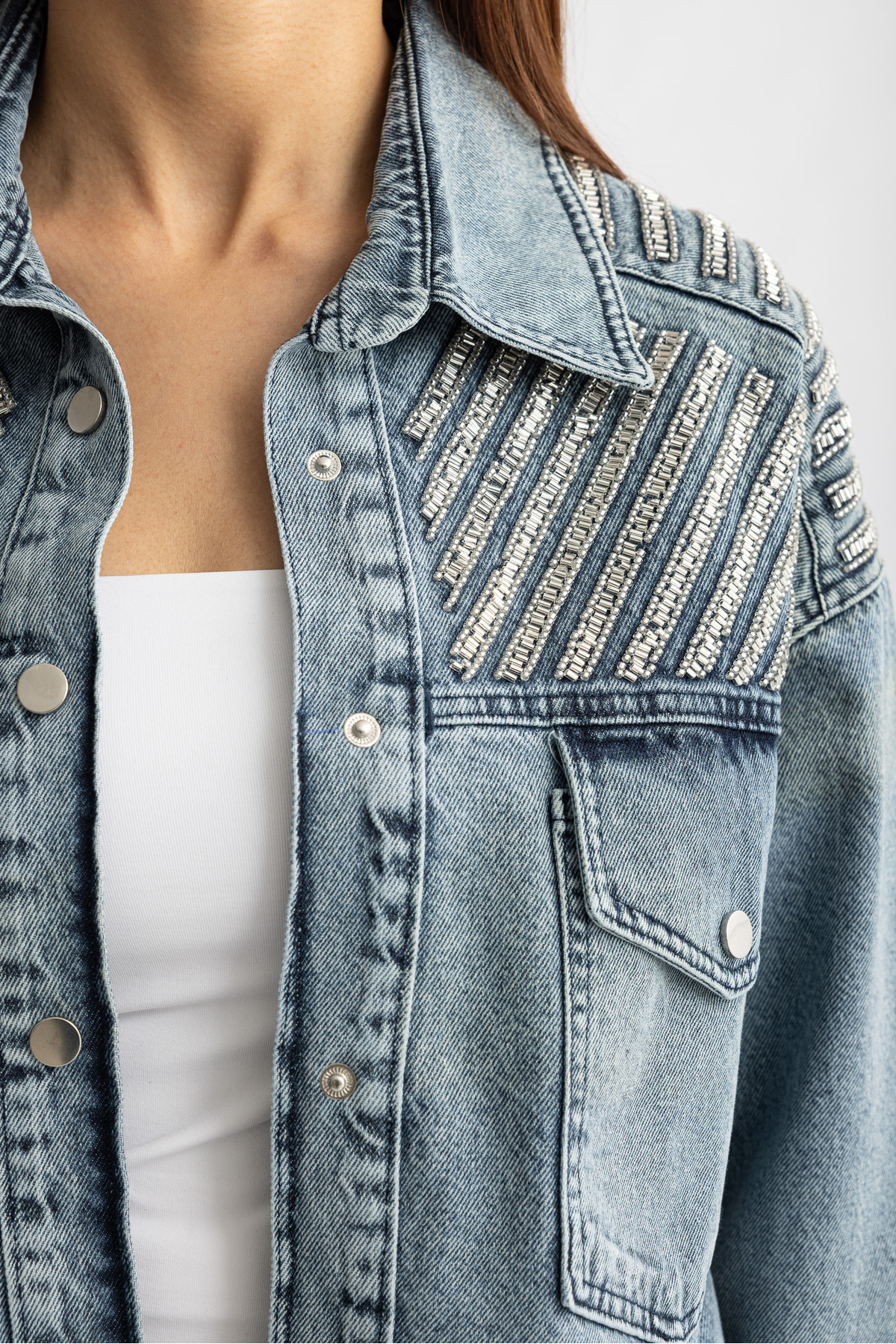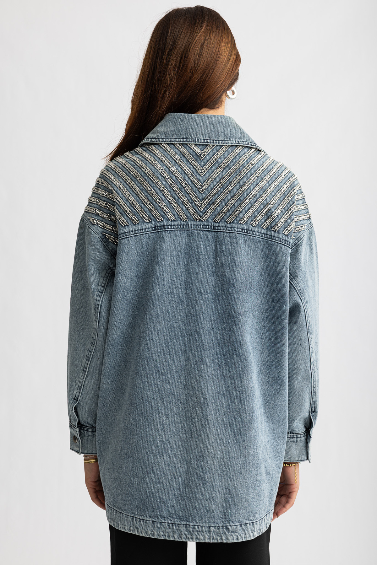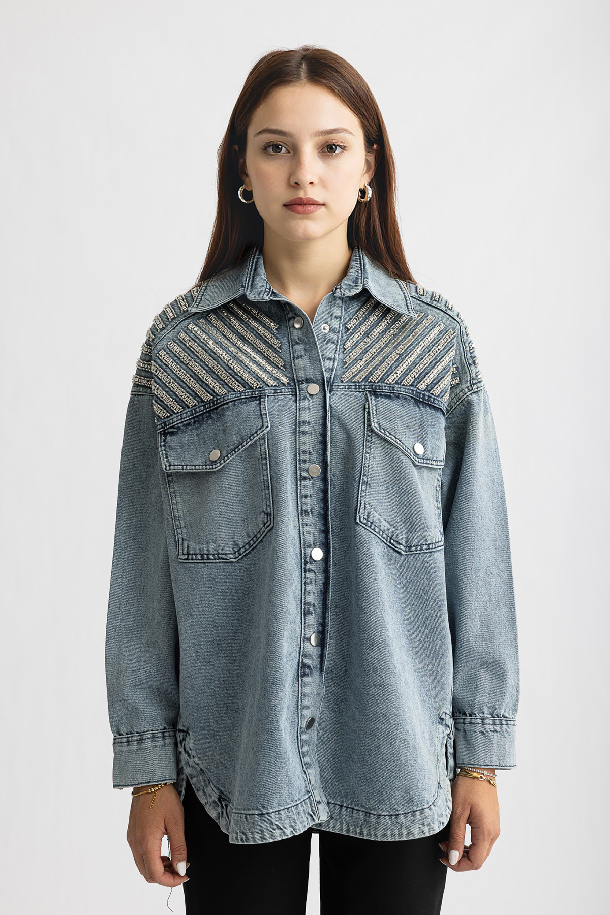 5507 - Boncuk İşlemeli Rahat Şık Kadın Kot Ceket 5507 - Boncuk İşlemeli Rahat Şık Kadın Kot Ceket L/XL