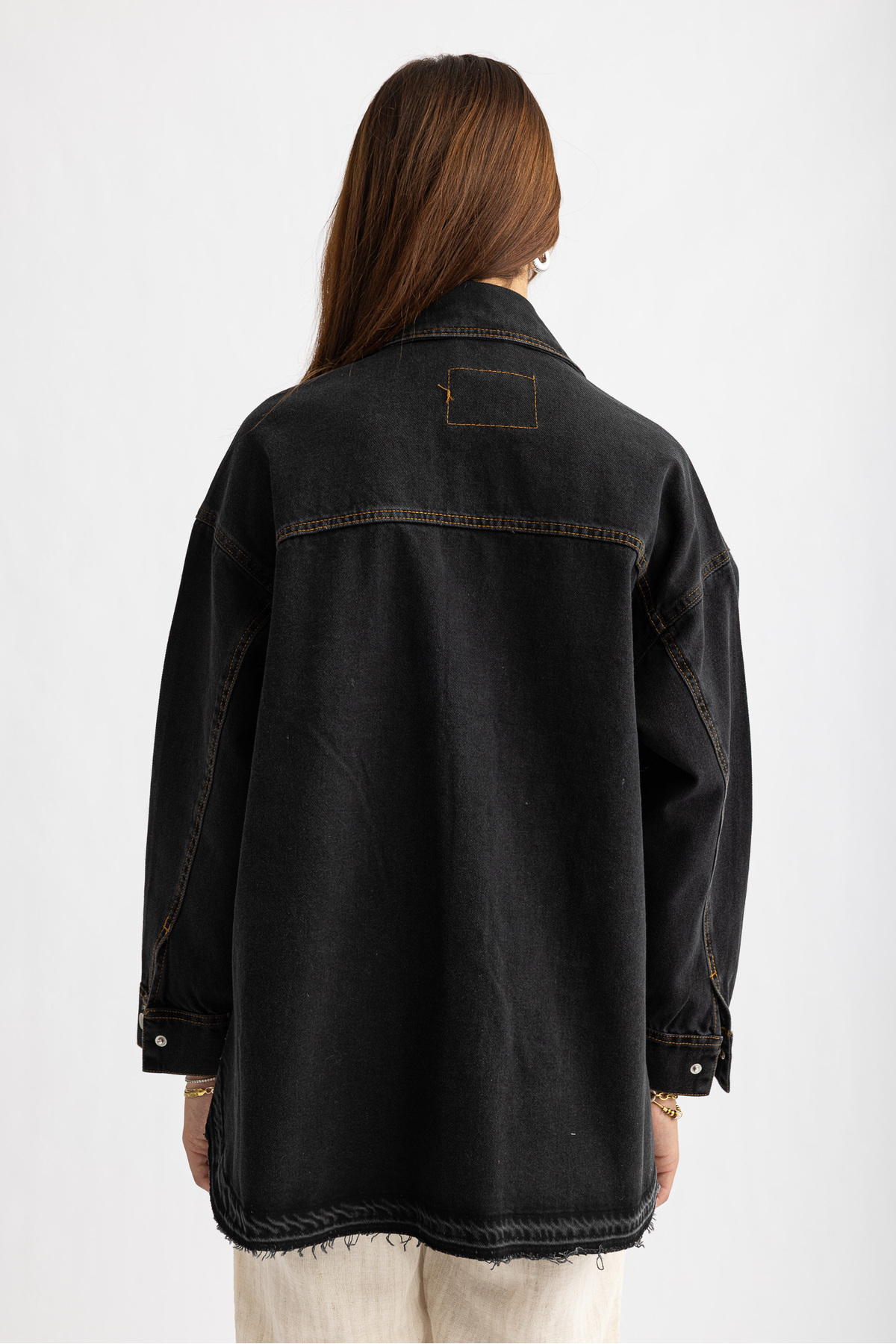 5524 - Saçaklı Çıt Çıt Kapamalı Rahat Şık Kadın Kot Ceket 5524 - Saçaklı Çıt Çıt Kapamalı Rahat Şık Kadın Kot Ceket L/XL