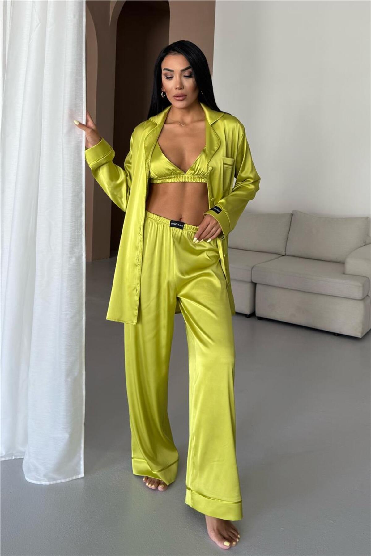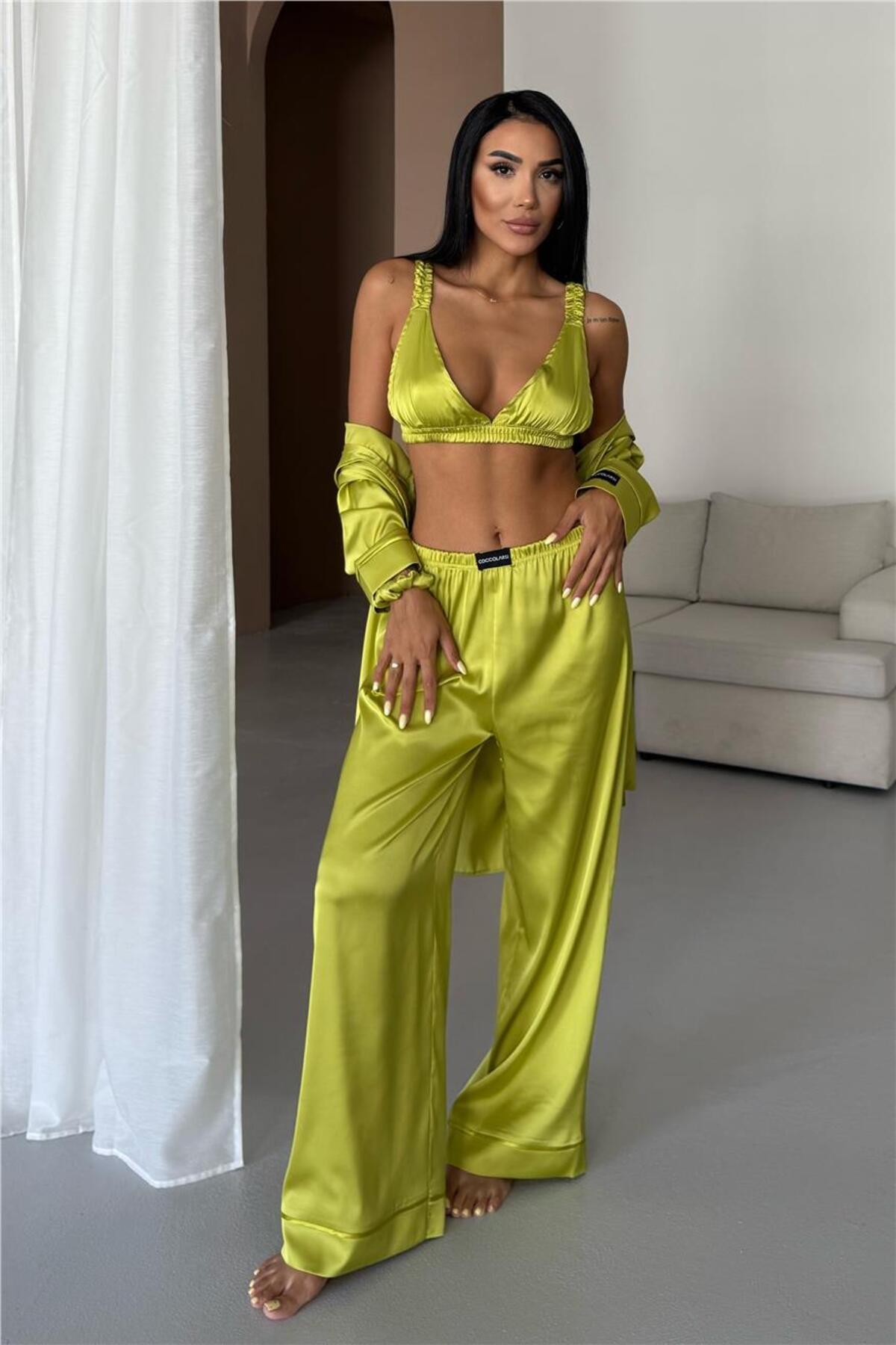 Vento Della Notte Yağ Yeşili Saten Uzun Üçlü Pijama Takımı Vento Della Notte Yağ Yeşili Saten Uzun Üçlü Pijama Takımı 1512 XL