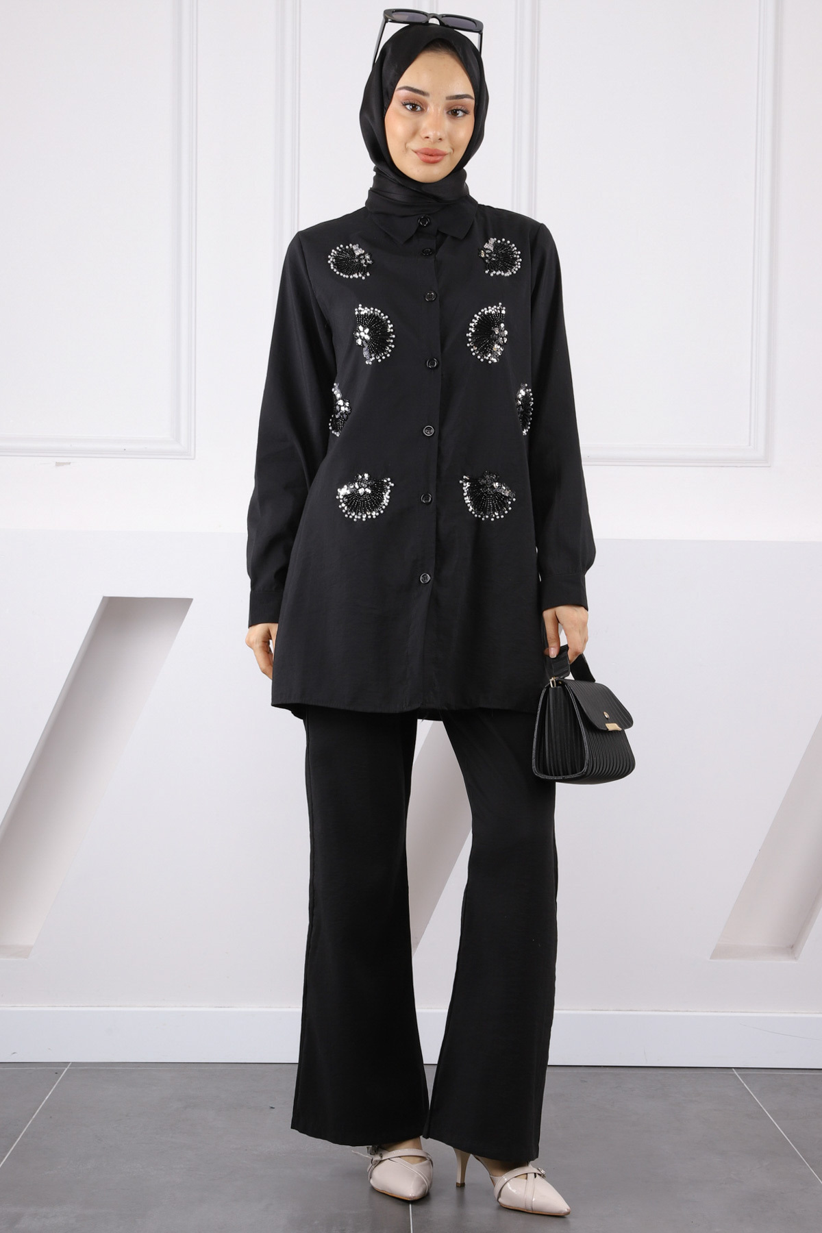 Siyah Boncuk İşlemeli Tunik Pantolonlu Takım Siyah Boncuk İşlemeli Tunik Pantolonlu Takım IMJ007105 46