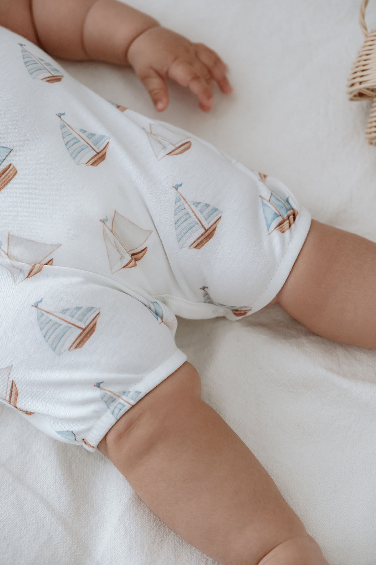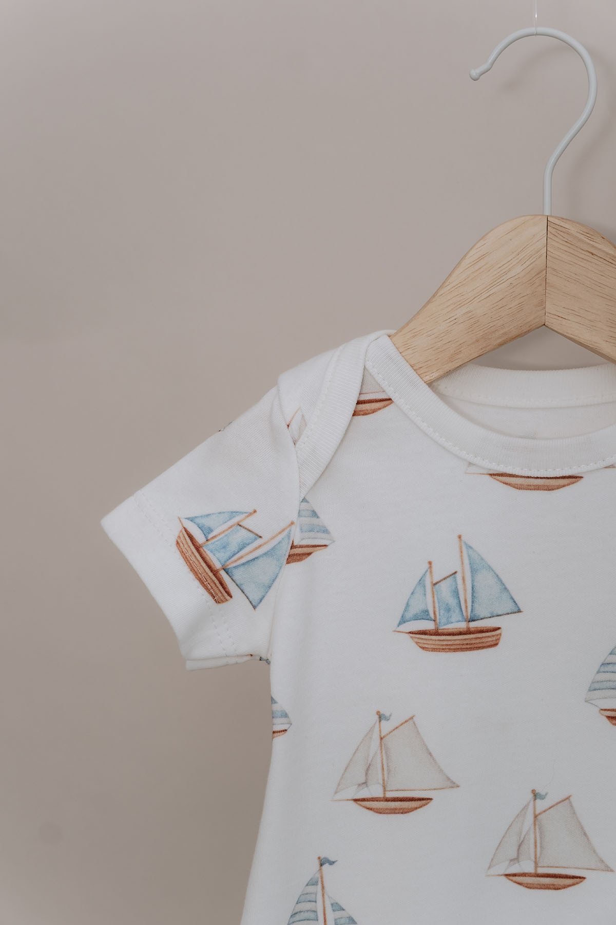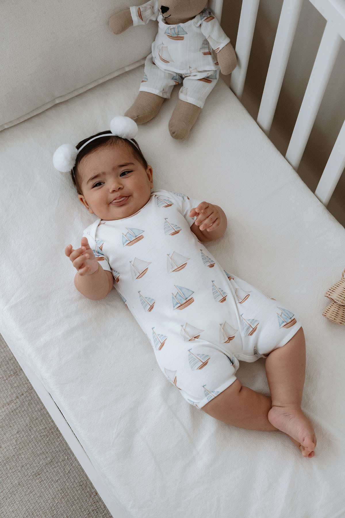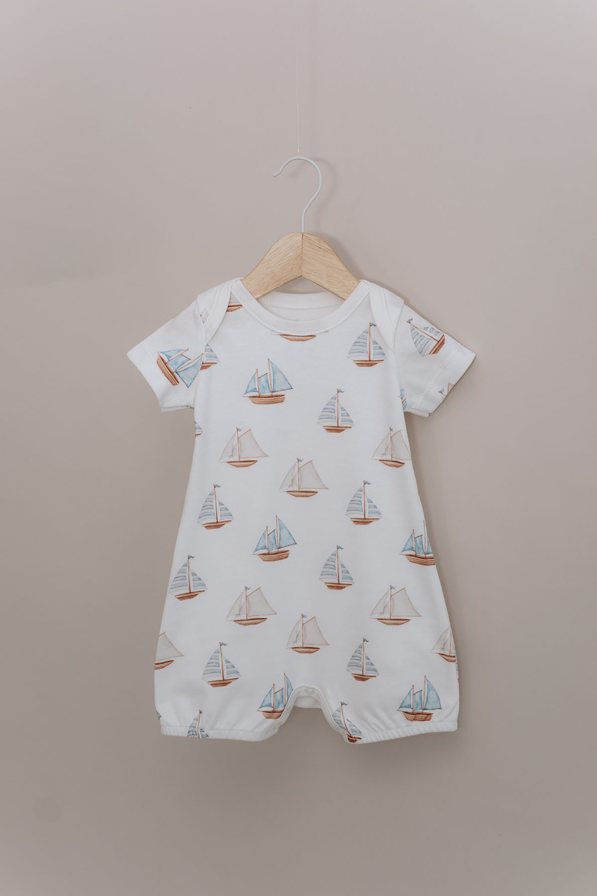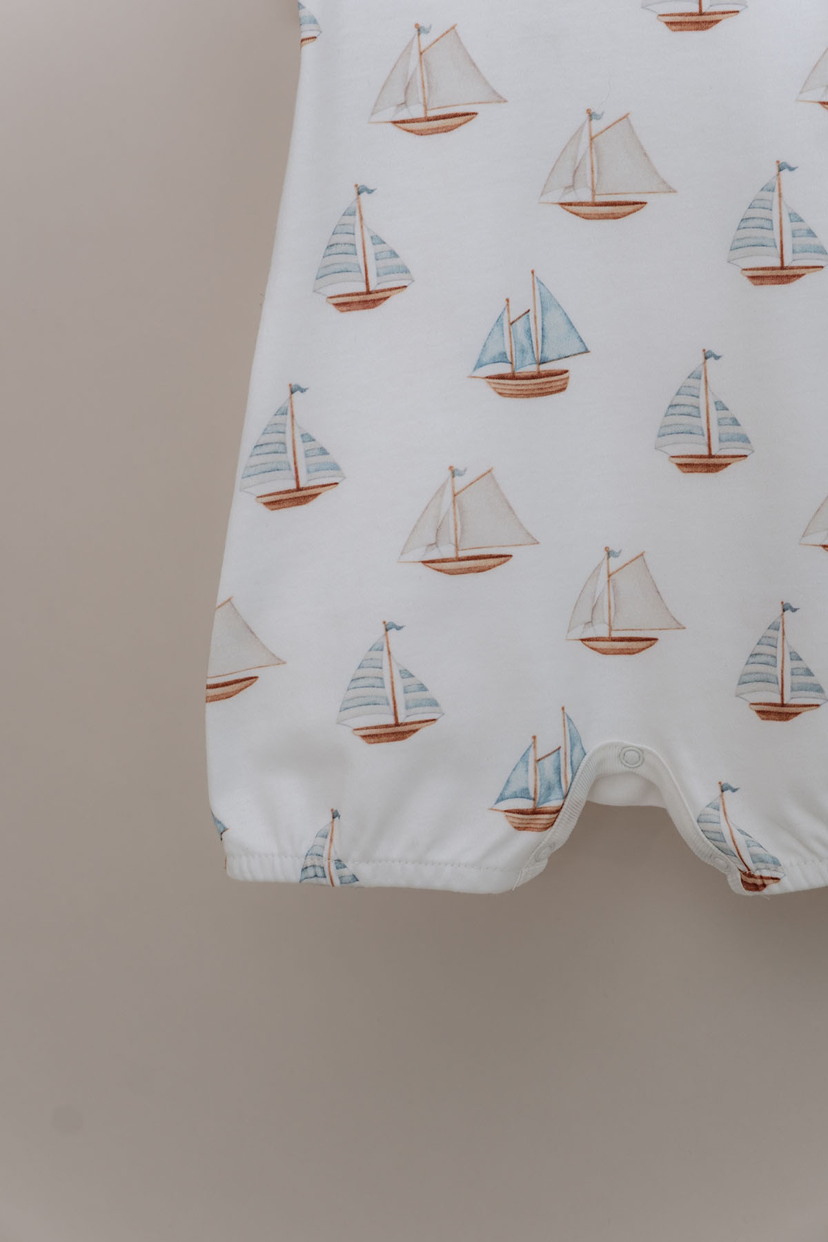 Kısa Kol Şortlu Yazlık Tulum - Pureline Series - Sail Boats Kısa Kol Şortlu Yazlık Tulum - Pureline Series - Sail Boats BYTPURELINEWF 18-24 AY
