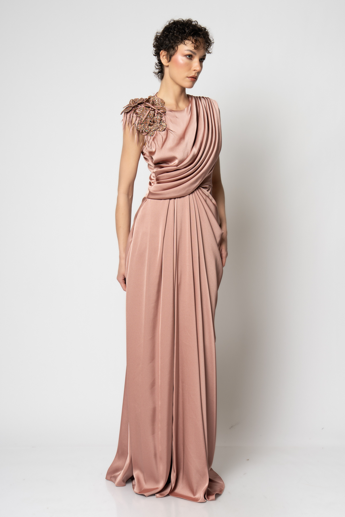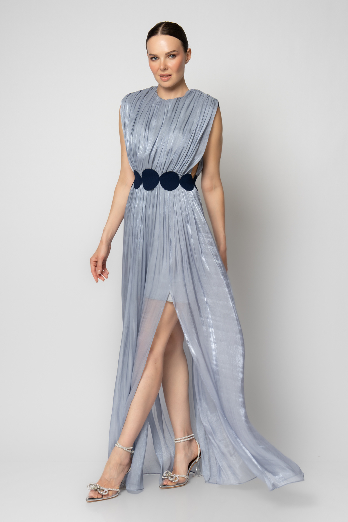 Beli daire kemerli şifon abiye elbise Beli daire kemerli şifon abiye elbise 6344 44