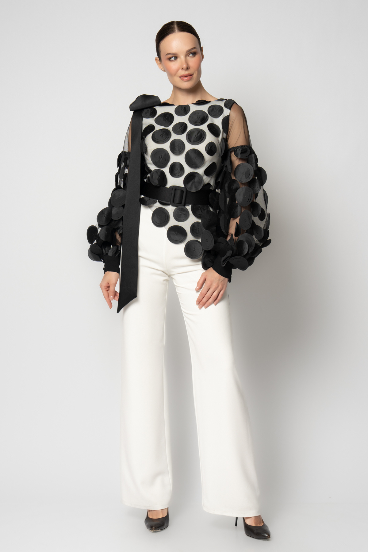 Üstü daire desen tüllü krep abiye tulum Üstü daire desen tüllü krep abiye tulum 6356 48