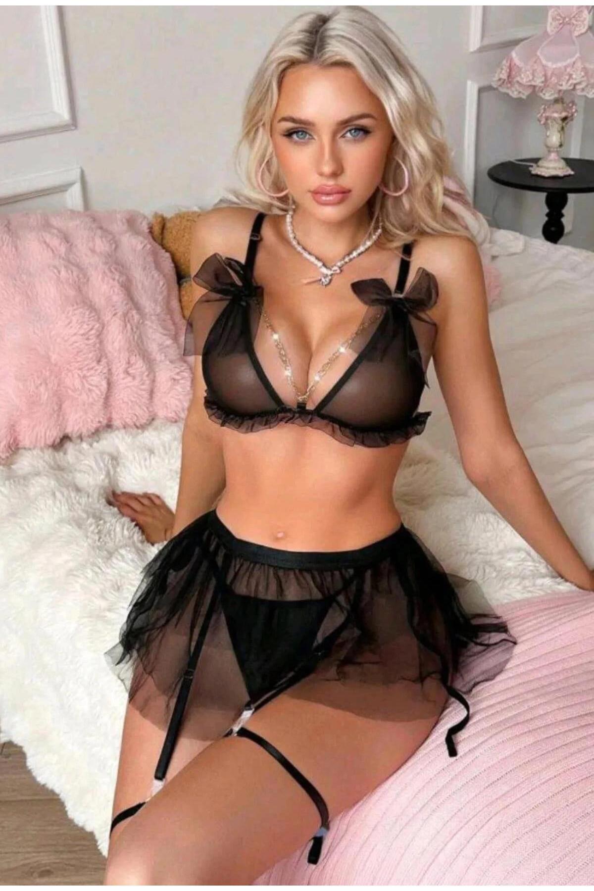 Arias Closet Kırmızı Transparan Fantezi Etekli Gecelik Takım Arias Closet Kırmızı Transparan Fantezi Etekli Gecelik Takım TXE137CB3824856 L/XL