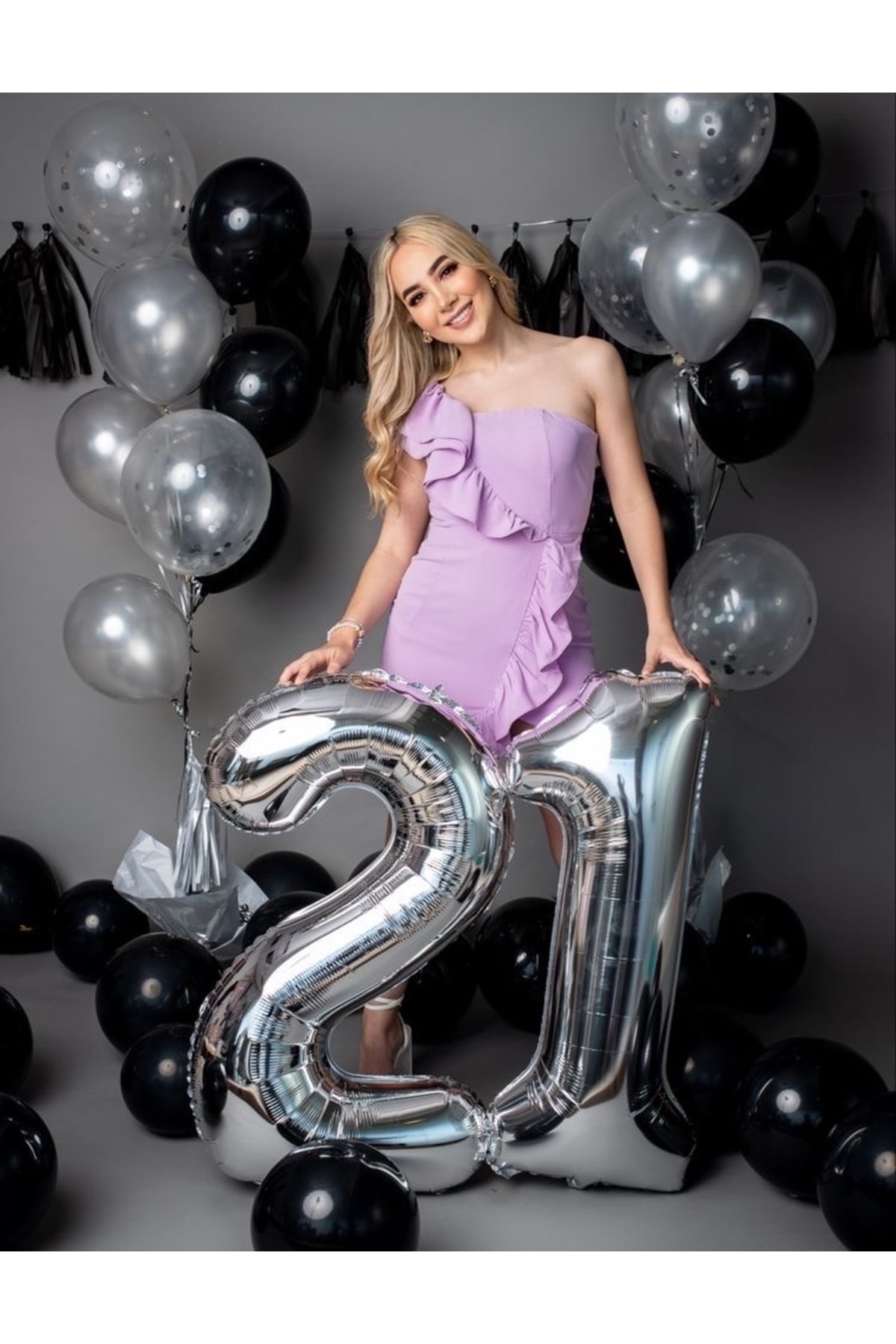 Pembe Fiyonklu Şeffaf Beyaz Balon Seti + Krem Rakam Folyo Balon – 11'li Doğum Günü Parti Süsü enyeng1a
