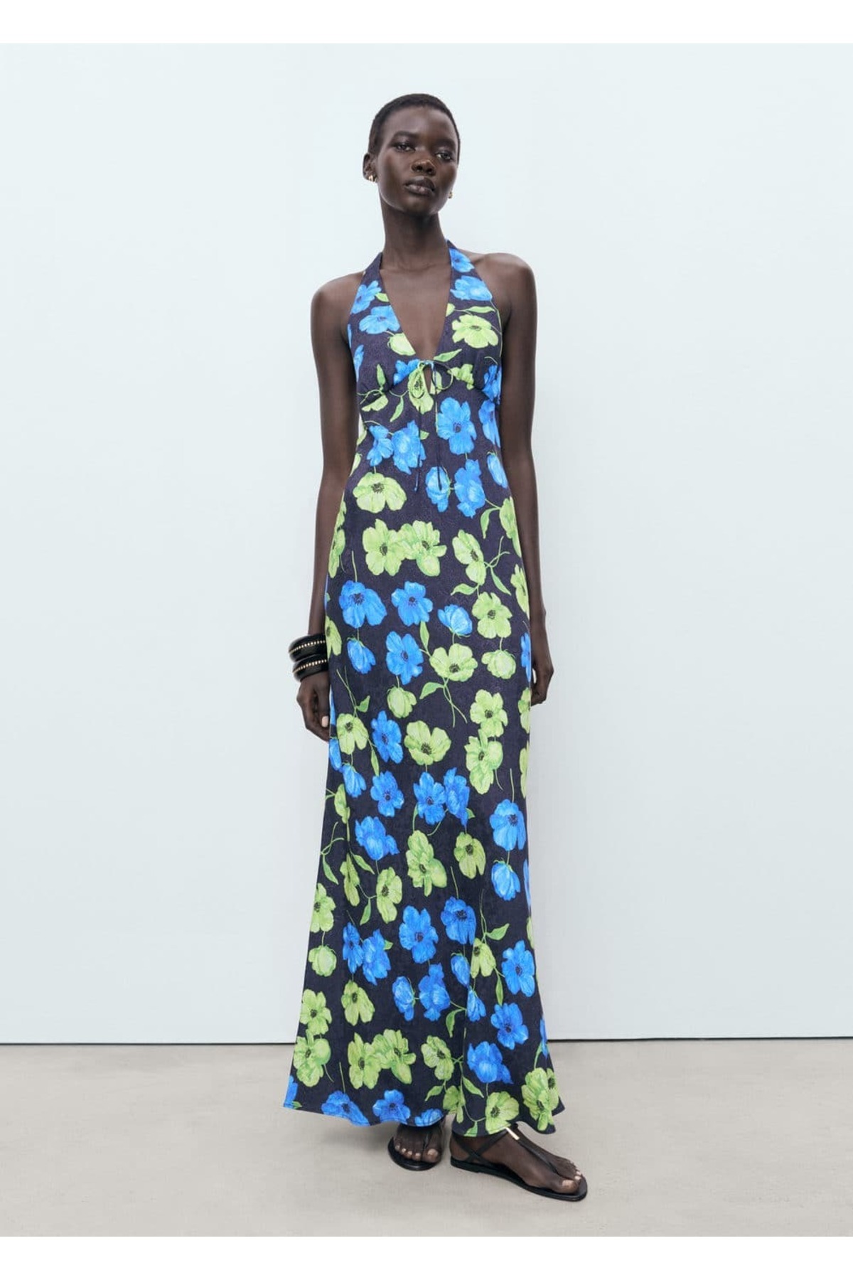 Halter yaka çiçek desenli elbise Halter yaka çiçek desenli elbise 17002541 XL