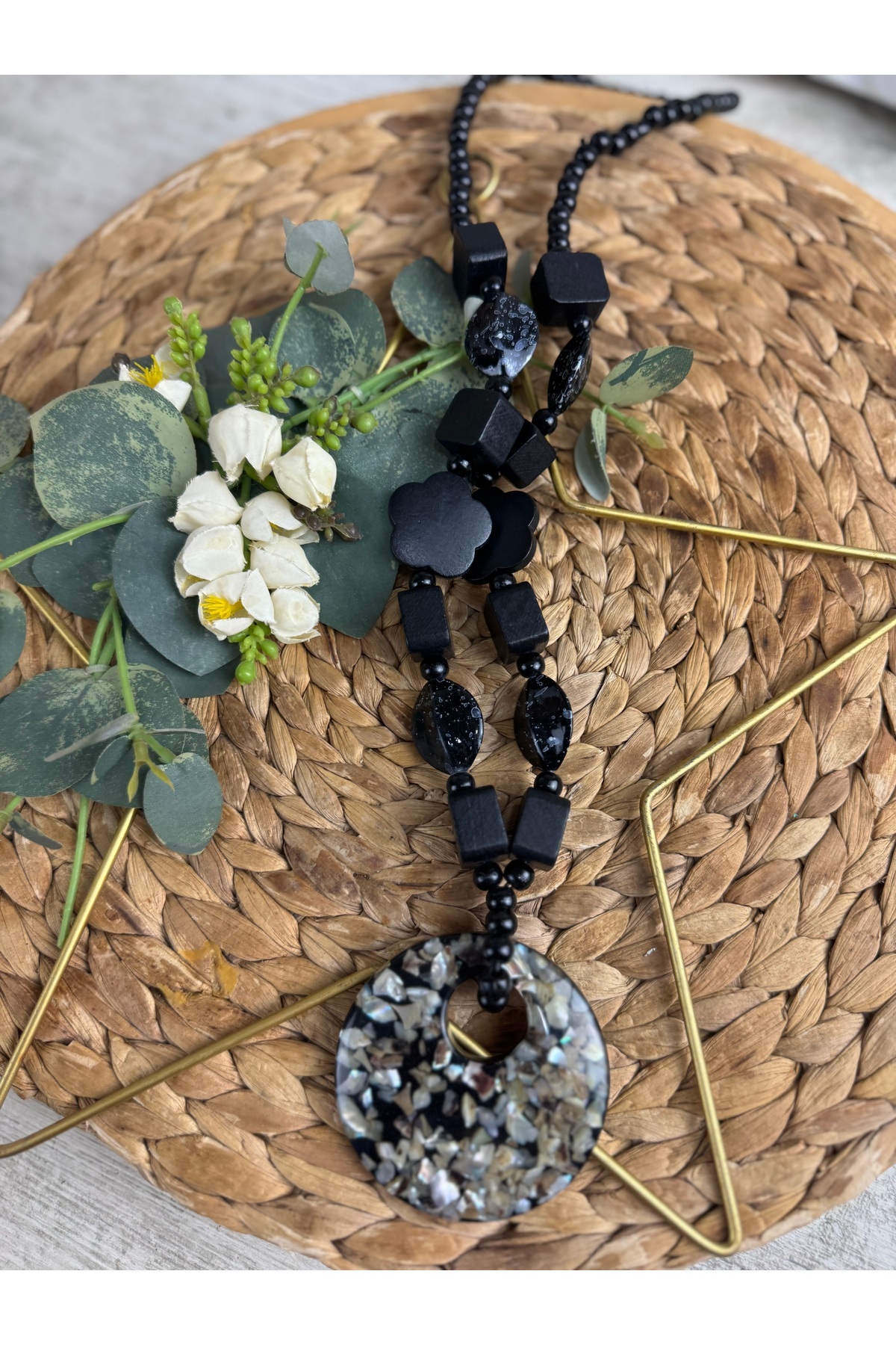 Ahşap boncuklu tasarım leopar kolye Ahşap boncuklu tasarım leopar kolye ahşap17 M