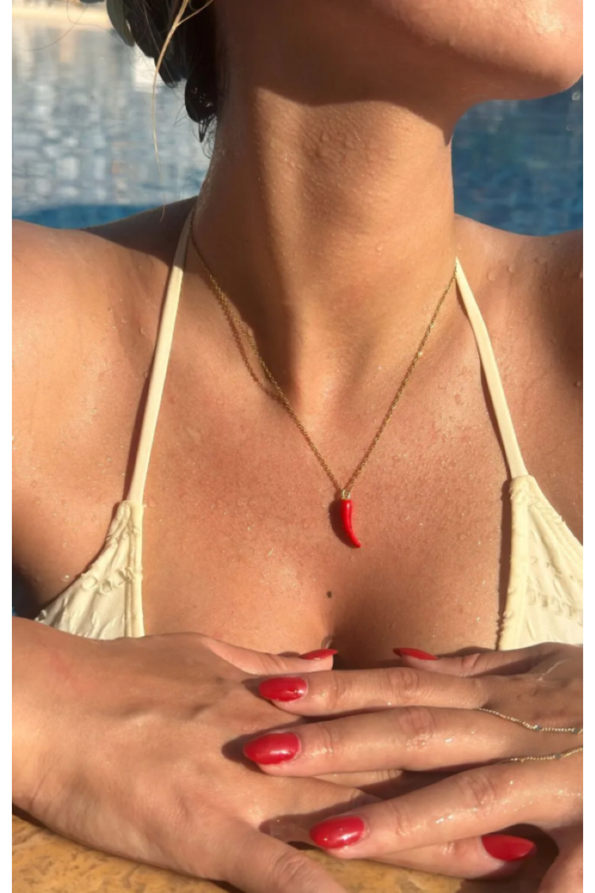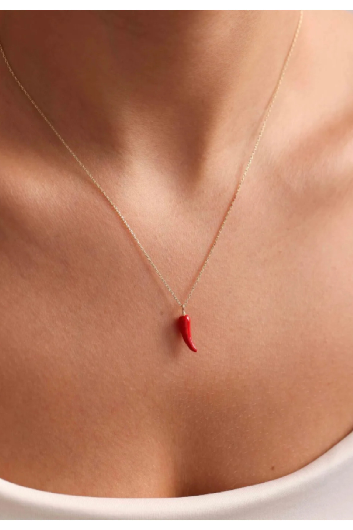 Kırmızı Biber Motifli Altın Renkli Çelik Kolye - Ervalina Trend Kırmızı Biber Motifli Altın Renkli Çelik Kolye - Ervalina Trend KRMZBBRKOL59625896 تک سایز