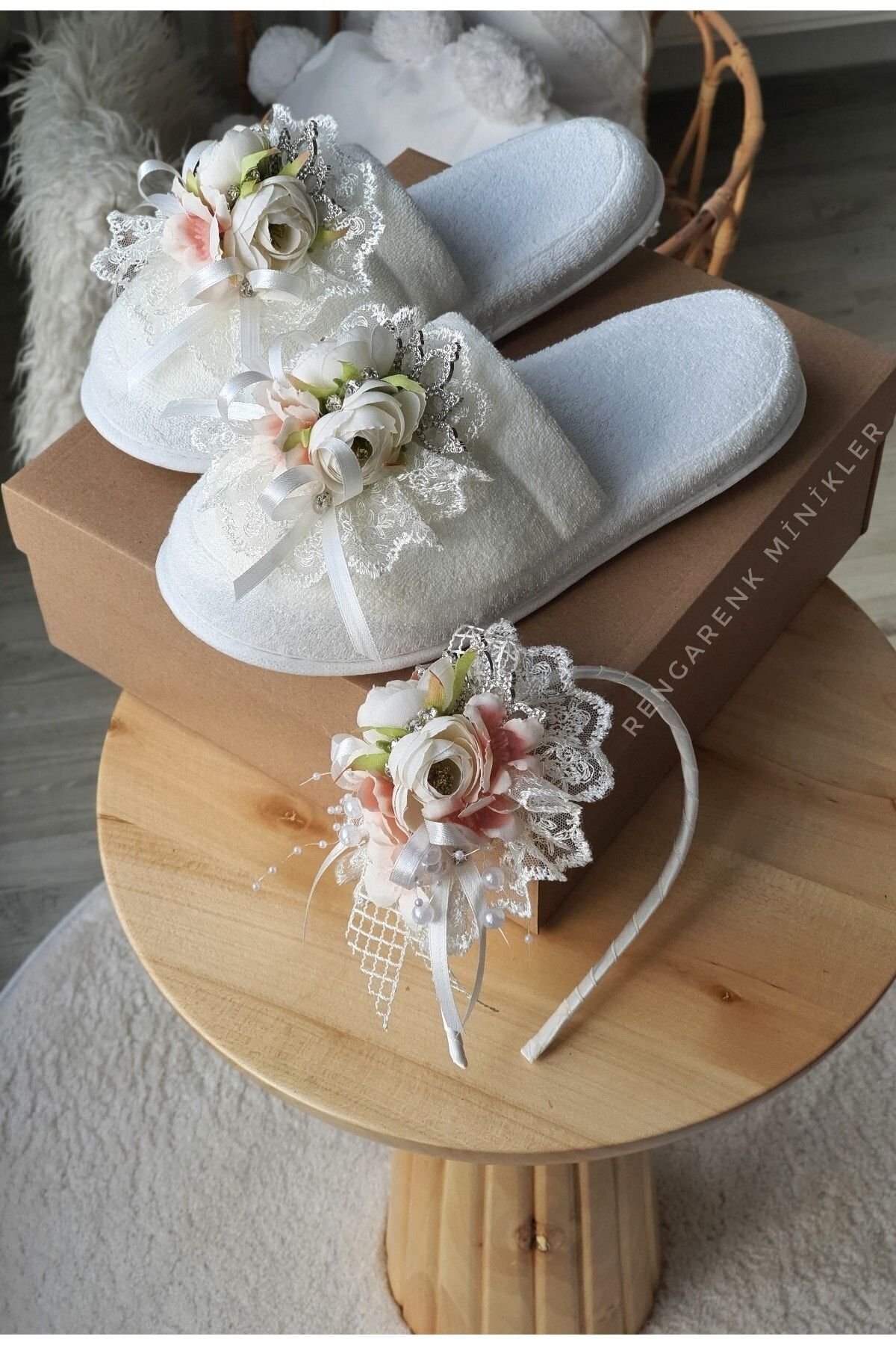Lazer Çiçekli Lohusa Anne Tacı Bandanası ve Bebek Patiği Lazer Çiçekli Lohusa Anne Tacı Bandanası ve Bebek Patiği grdsvbszvb تک سایز