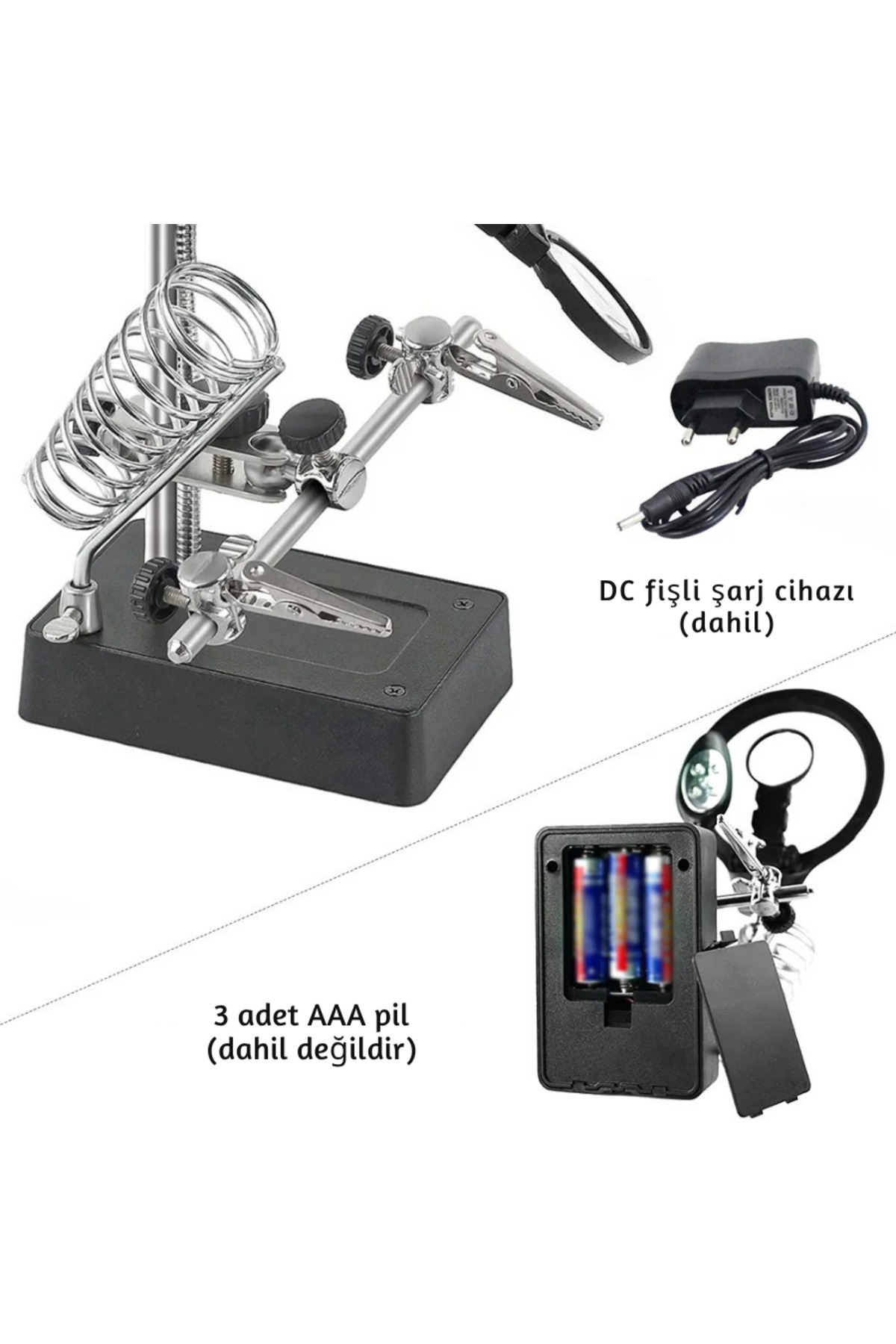 مشخصات فنی MG16129 Çok Fonksiyonlu Işıklı Büyüteç – Lehim Tamir Standı, 5 LED ’li, 2.5X / 7.5X / 10X Zoom بعد، ابعاد، اندازه سایز بزرگ Diğer Özellikler Lehim Standı Menşei CN مشخصات کلی