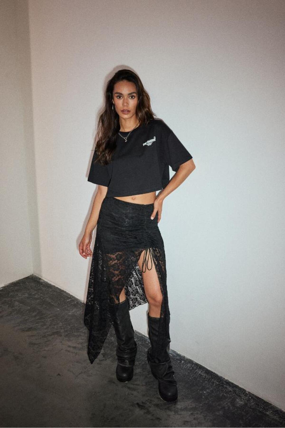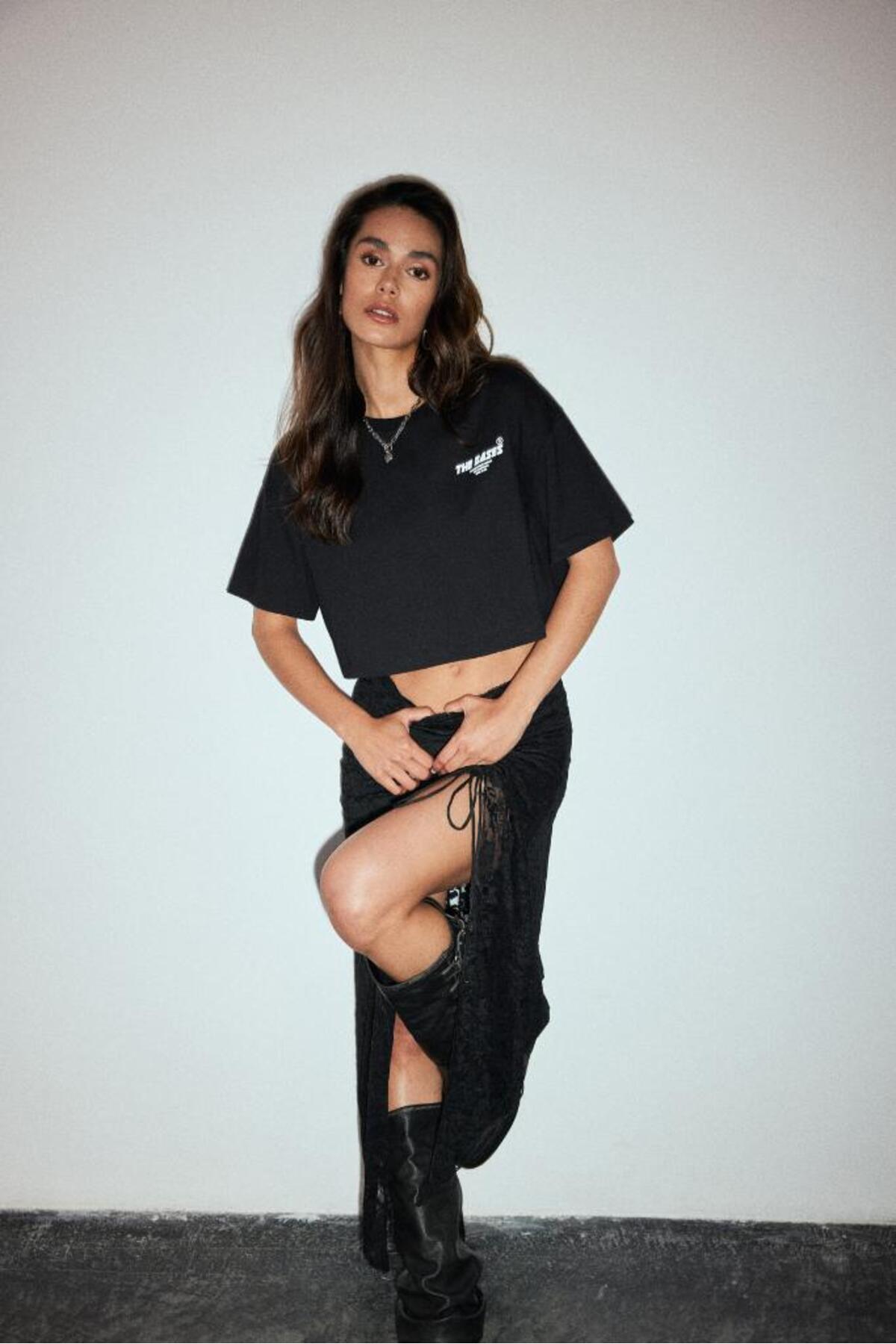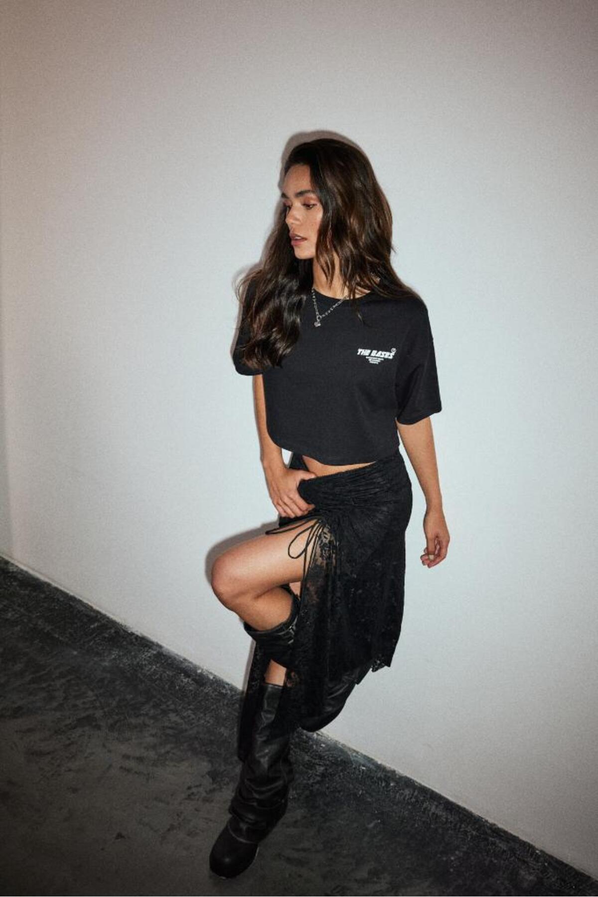 Oversize Crop Baskılı T-Shirt Oversize Crop Baskılı T-Shirt b24SSBKT0185 L