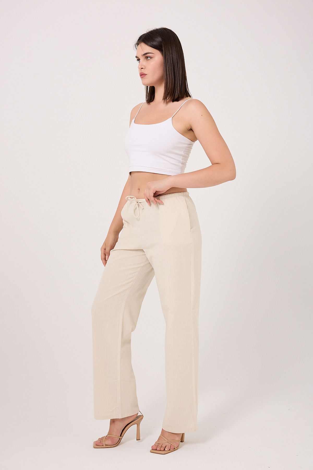 SEVİNDİ KADIN DÖKÜMLÜ YÜKSEK BEL LASTİKLİ KORDON BAĞCIKLI PALAZZO PANTOLON SEVİNDİ KADIN DÖKÜMLÜ YÜKSEK BEL LASTİKLİ KORDON BAĞCIKLI PALAZZO PANTOLON BYS-004 L