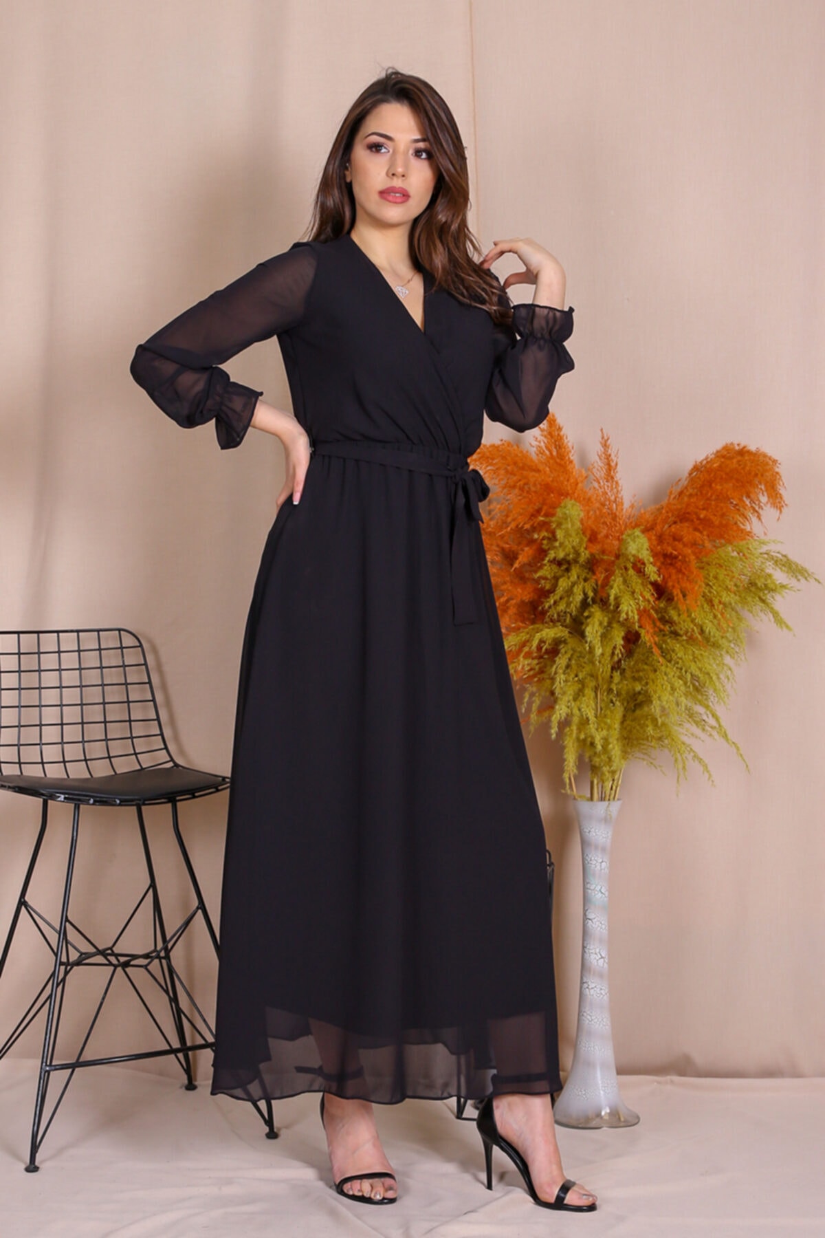 Siyah Kruvaze Yaka Astarlı Şifon Elbise Siyah Kruvaze Yaka Astarlı Şifon Elbise MA-0044 4XL-5XL