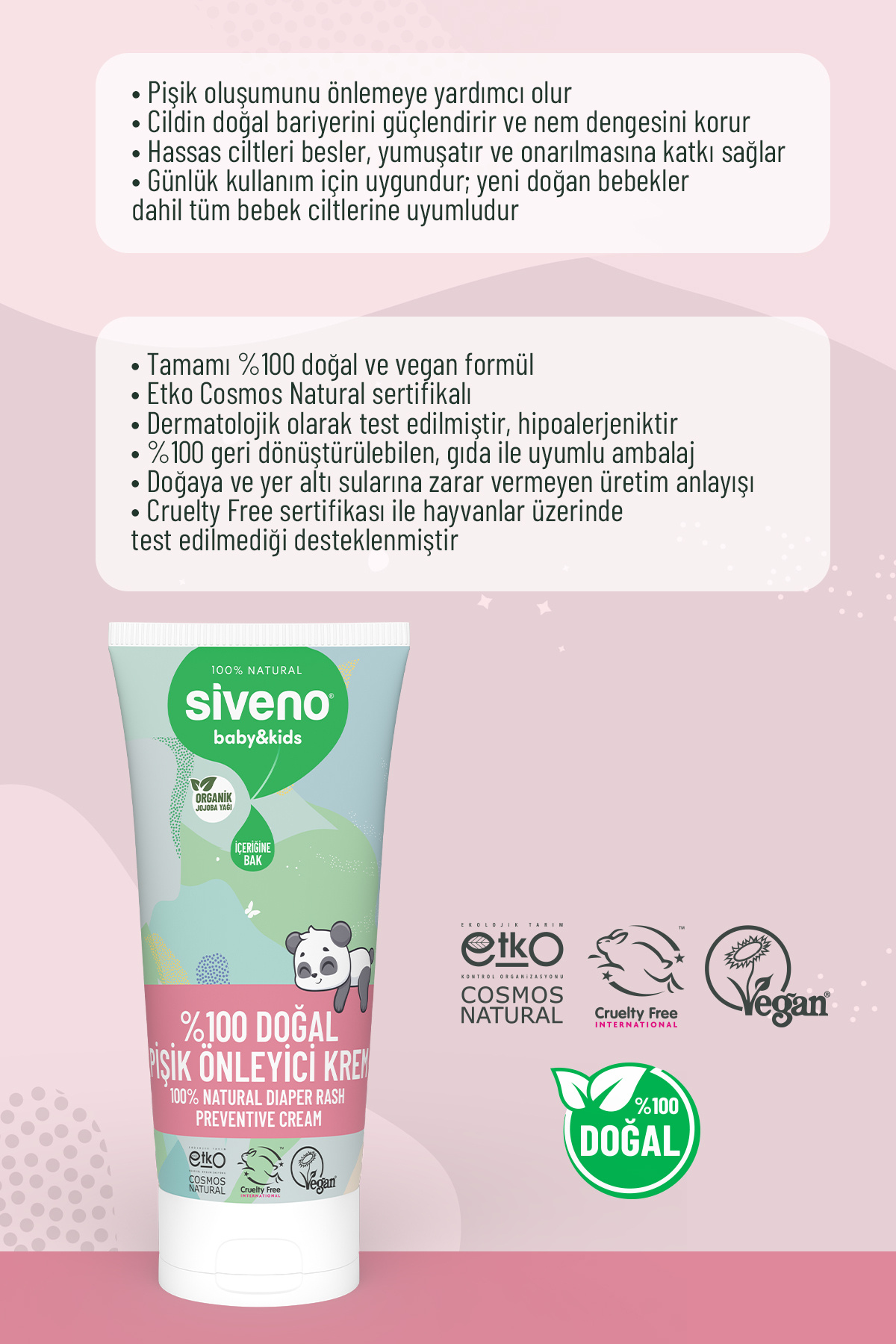 مشخصات فنی %100 Doğal Bebek Pişik Önleyici Krem Çinko PCA Yenidoğan Koruyucu & Hassas Onarıcı Bakım Kremi 50 ml اثر پیشگیری از راش Menşei TR Ürün Güvenliği Bilgisi Tehlikeli Değil مشخصات کلی
