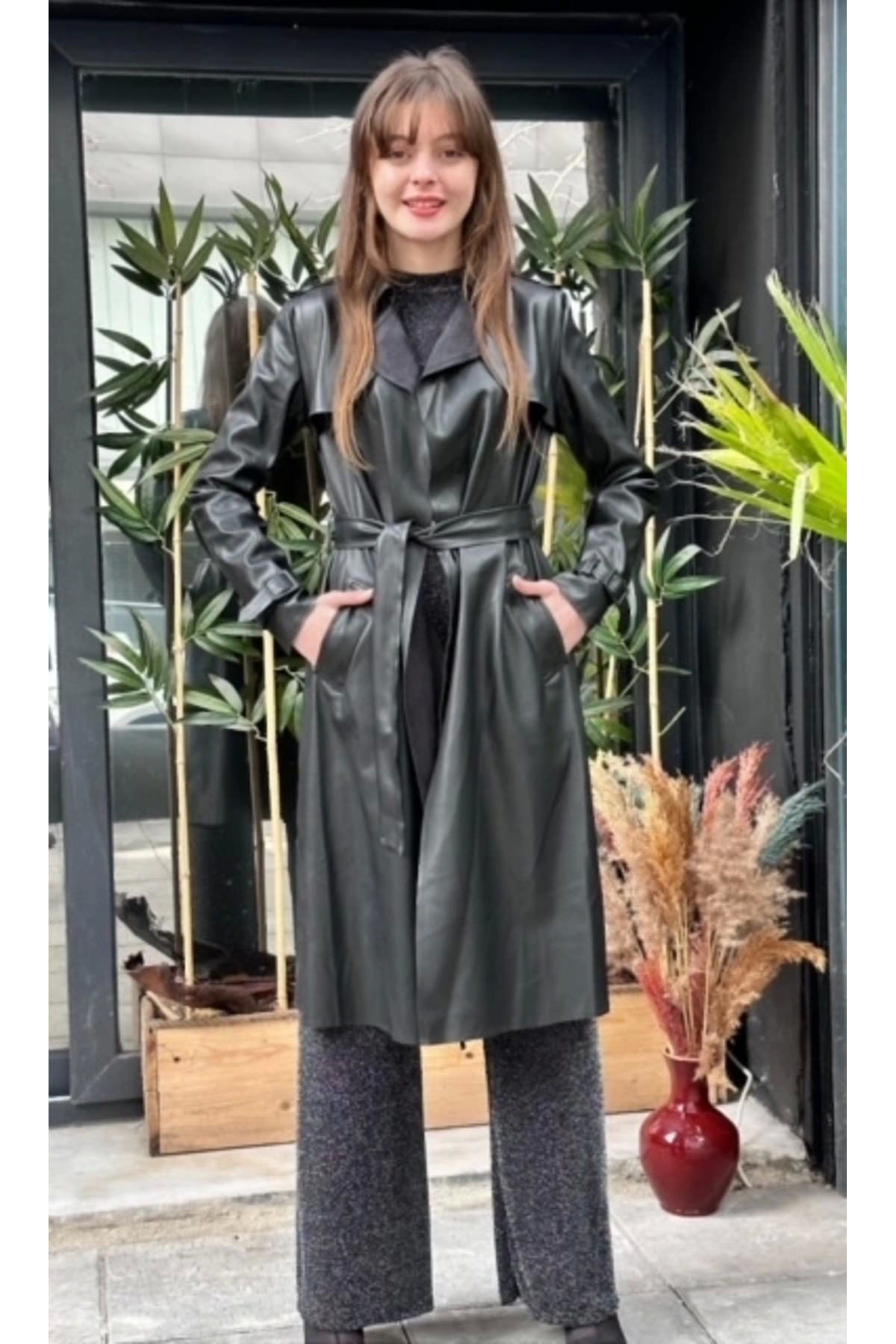 Suya Dayanıklı Kadın Deri Trençkot Siyah Ceket Suya Dayanıklı Kadın Deri Trençkot Siyah Ceket P534355S1391 M