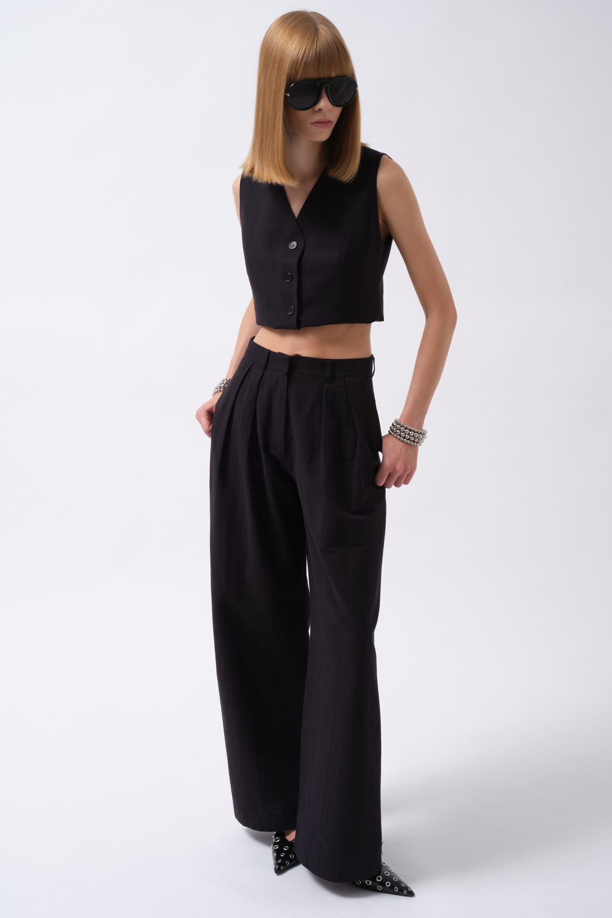 Çift Pileli Bol Paça Siyah Pantolon Çift Pileli Bol Paça Siyah Pantolon 52201045-1001 40