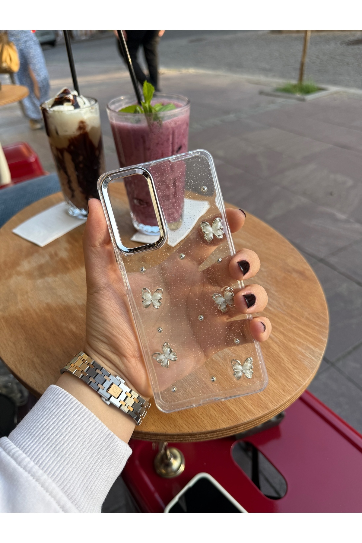 Samsung Galaxy A06 Kılıf Kelebek Desenli Şeffaf Kılıf Simli Parlak Kapak Samsung Galaxy A06 Kılıf Kelebek Desenli Şeffaf Kılıf Simli Parlak Kapak A06SimliŞeffaf تک سایز