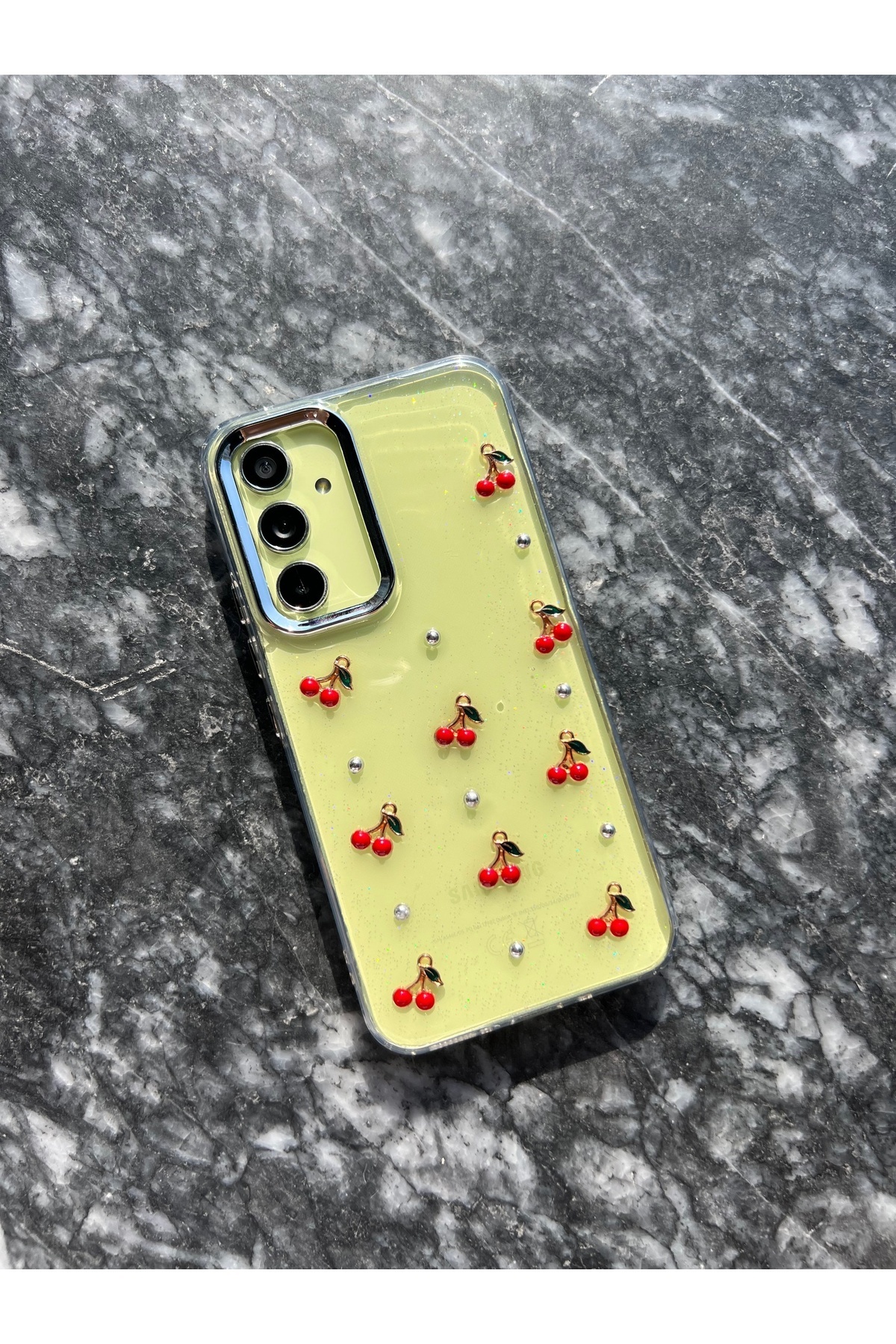 Samsung Galaxy A15 Kılıf Kiraz Desenli Şeffaf Kılıf Simli Parlak Kapak Samsung Galaxy A15 Kılıf Kiraz Desenli Şeffaf Kılıf Simli Parlak Kapak A15SimliŞeffaf تک سایز