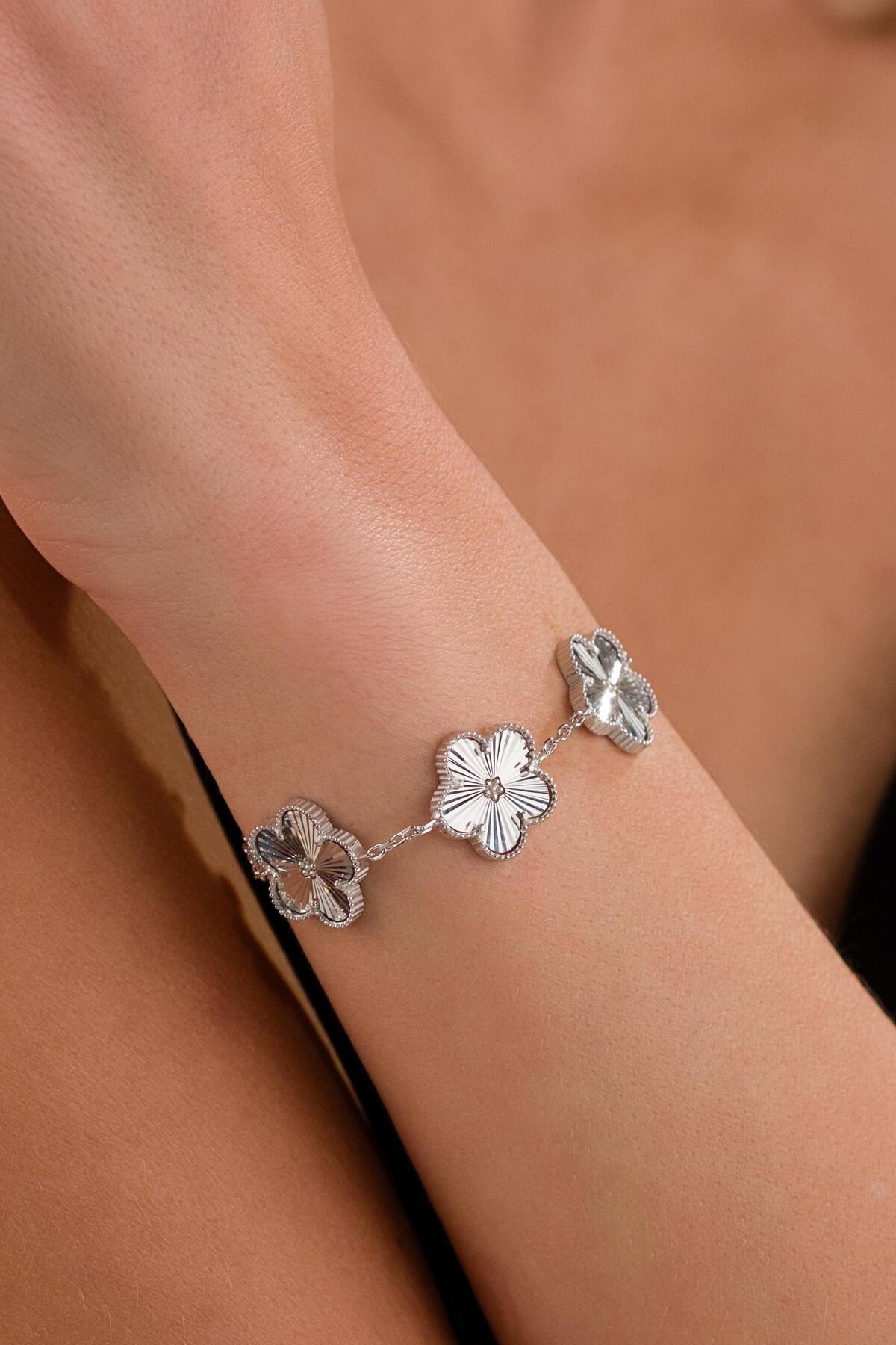 Gümüş Üçlü Yonca Papatya Çiçek Kalemli Lazer İşlemeli Taşsız Bileklik Gümüş Üçlü Yonca Papatya Çiçek Kalemli Lazer İşlemeli Taşsız Bileklik KB861 تک سایز