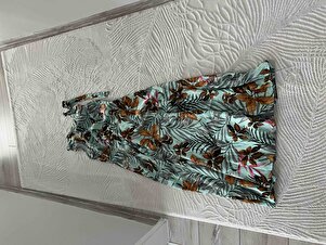 Kadın Su Yeşili Taba Halter Yaka Desenli Midi Viskon Elbise FG00047 Kadın Su Yeşili Taba Halter Yaka Desenli Midi Viskon Elbise FG00047 40
