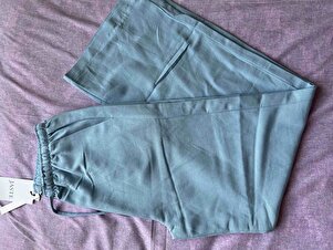 Kadın Mavi Beli Lastikli Bol Paça Palazzo Keten Pantolon Kadın Mavi Beli Lastikli Bol Paça Palazzo Keten Pantolon 3805 XL