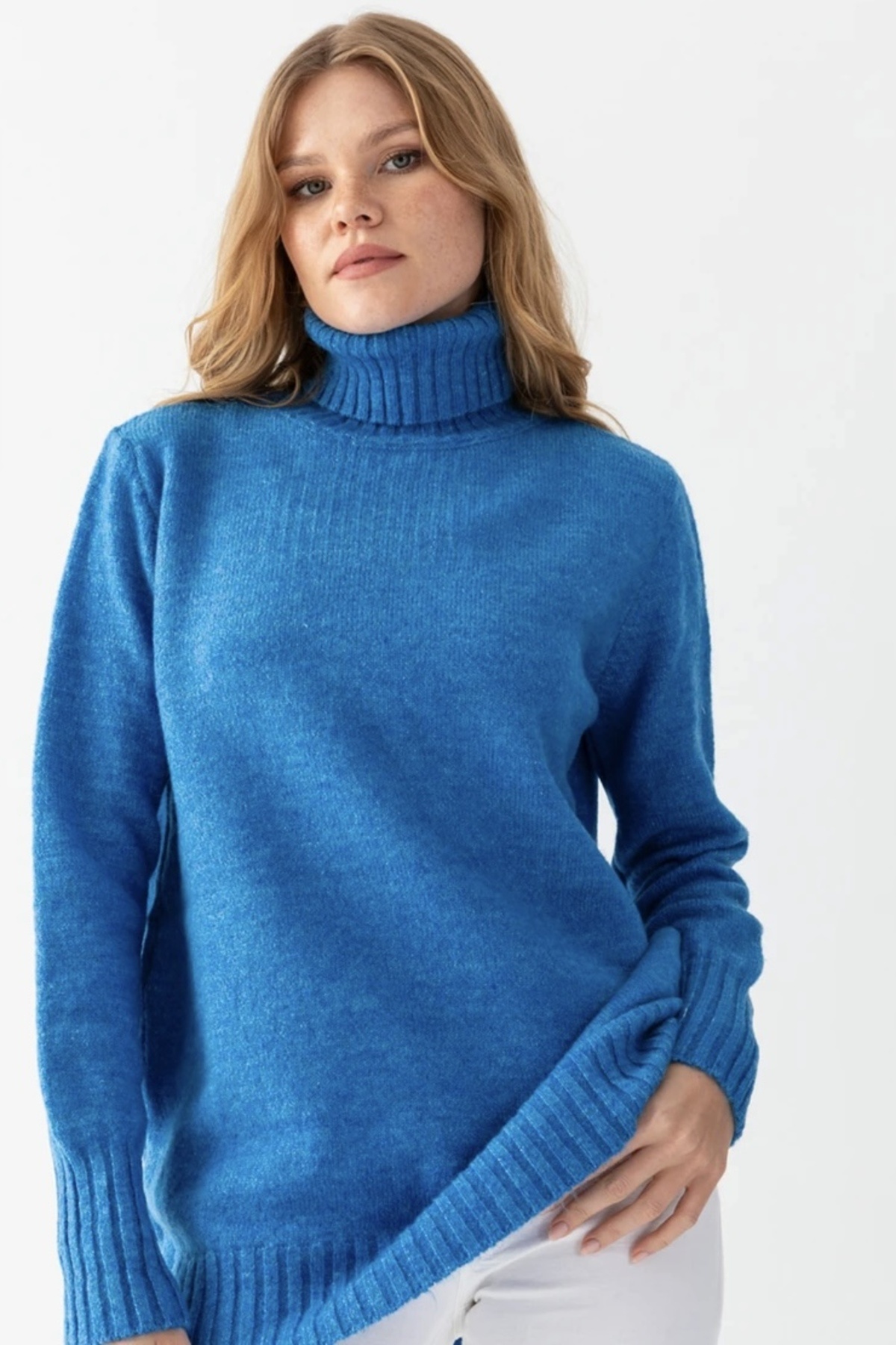Kolye Detaylı Kol Kısmı Derili Triko Kazak RC8205 Kolye Detaylı Kol Kısmı Derili Triko Kazak RC8205 Standart